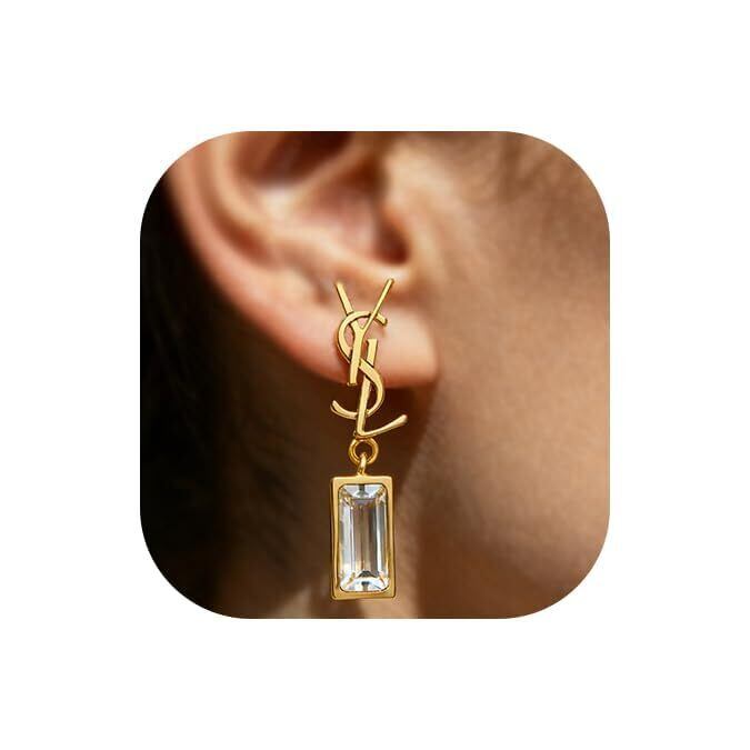 【数量限定】フランスのジュエリー、ゴールドクリスタルペンダントイヤリング、パリなどのエレガントな女性用アクセサリー、ラグジュアリーな日常とパーティー向け [並行輸入品]