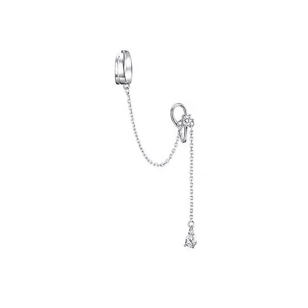 【 人気のデザイン 】片耳用たれさがりイヤーカフチェーン。まるで本物のピアスの様に見えるので、仕事でピアスができない方・穴を開けるのに迷っている方・まだ穴を開けていない学生さんへもオススメです。