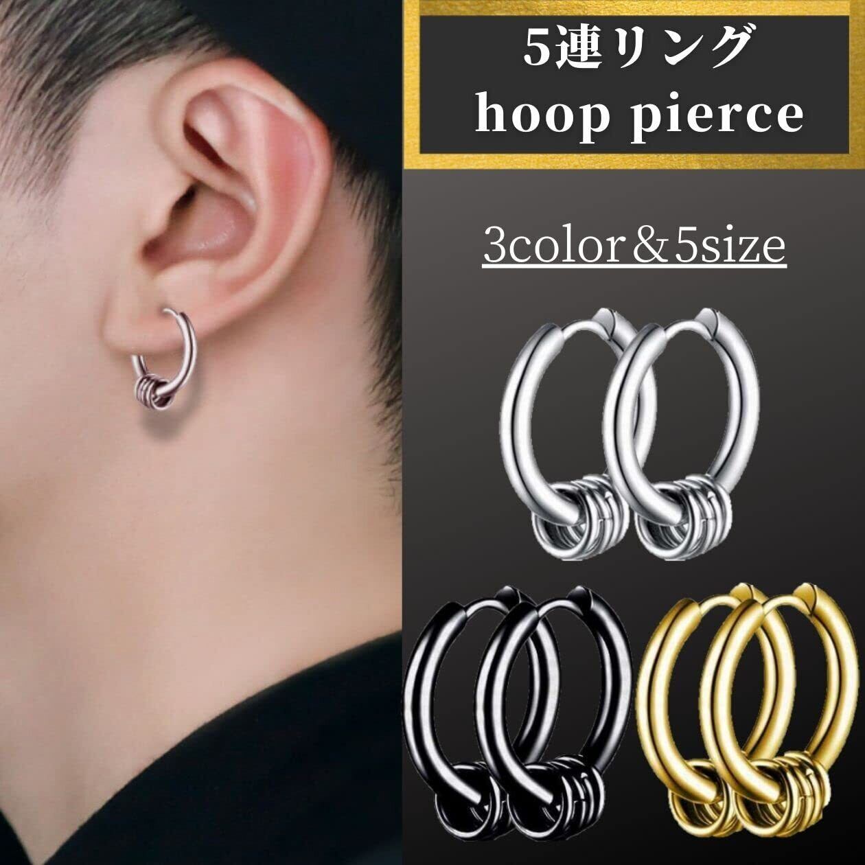 swars ピアス 5連リング メンズ レディース フープ リング 金属アレルギー対応 両耳セット