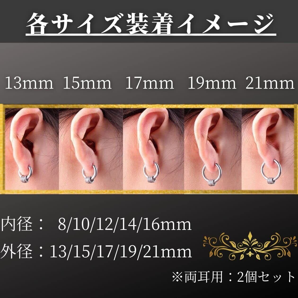 【キャッチ不要のフープピアス】 「カチッ」と留まる中折れ型のリング型のピアスのため、キャッチを無くす心配はございません。また、両耳用、2個セットになりますので、片耳だけの装着、両耳での装着、気分に合わせてご使用いただけます。お友達同士や、カップルでシェアすると、さらにお得なのでおススメです。