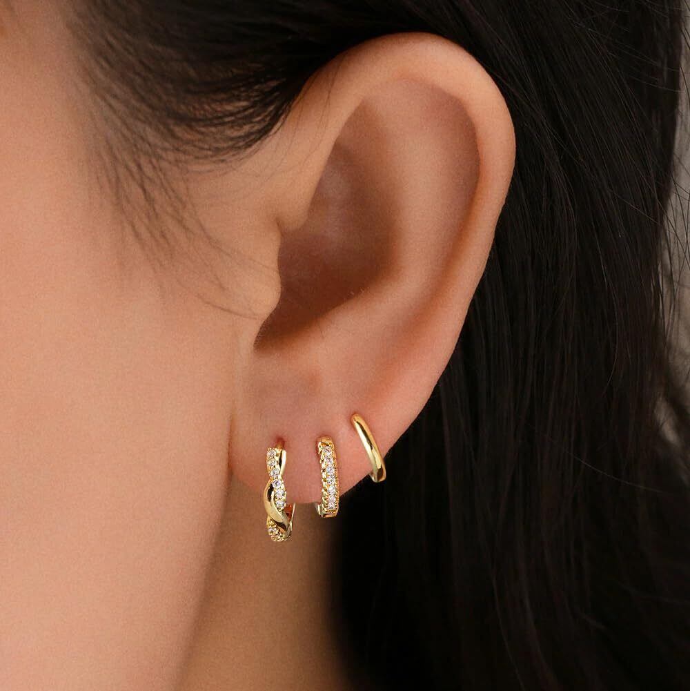 【特価セール】【Mesaro】3ペア ピアス レディース フープピアス リングピアス サークル 中折れ キャッチレス 開閉式 ジルコニア シルバー ゴールド 小さめ 小さい 小振り 小ぶり シンプル つけっぱなし 両耳用 セット 男女兼用 ユニセックス 金属アレルギー対応 ギフトBOX付き