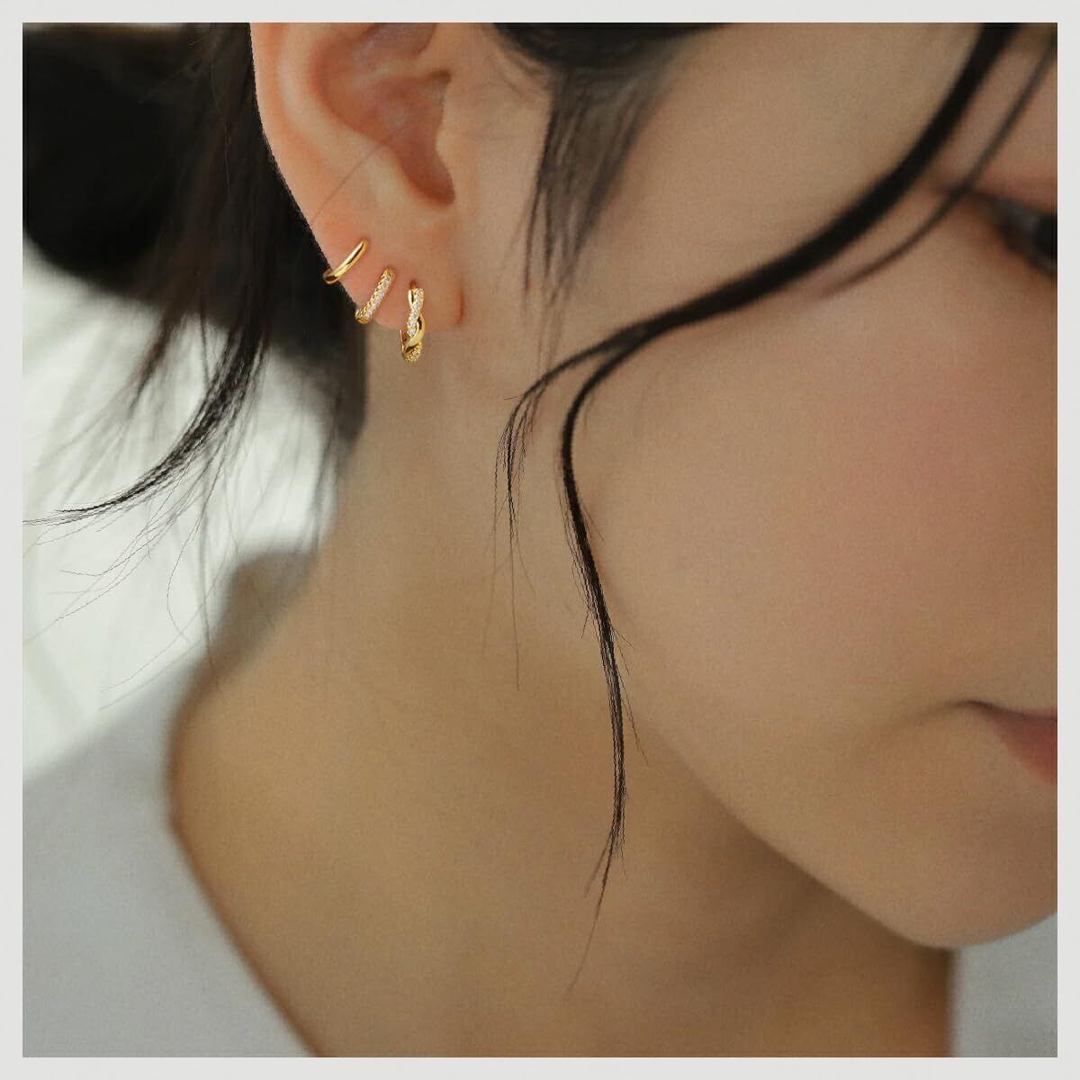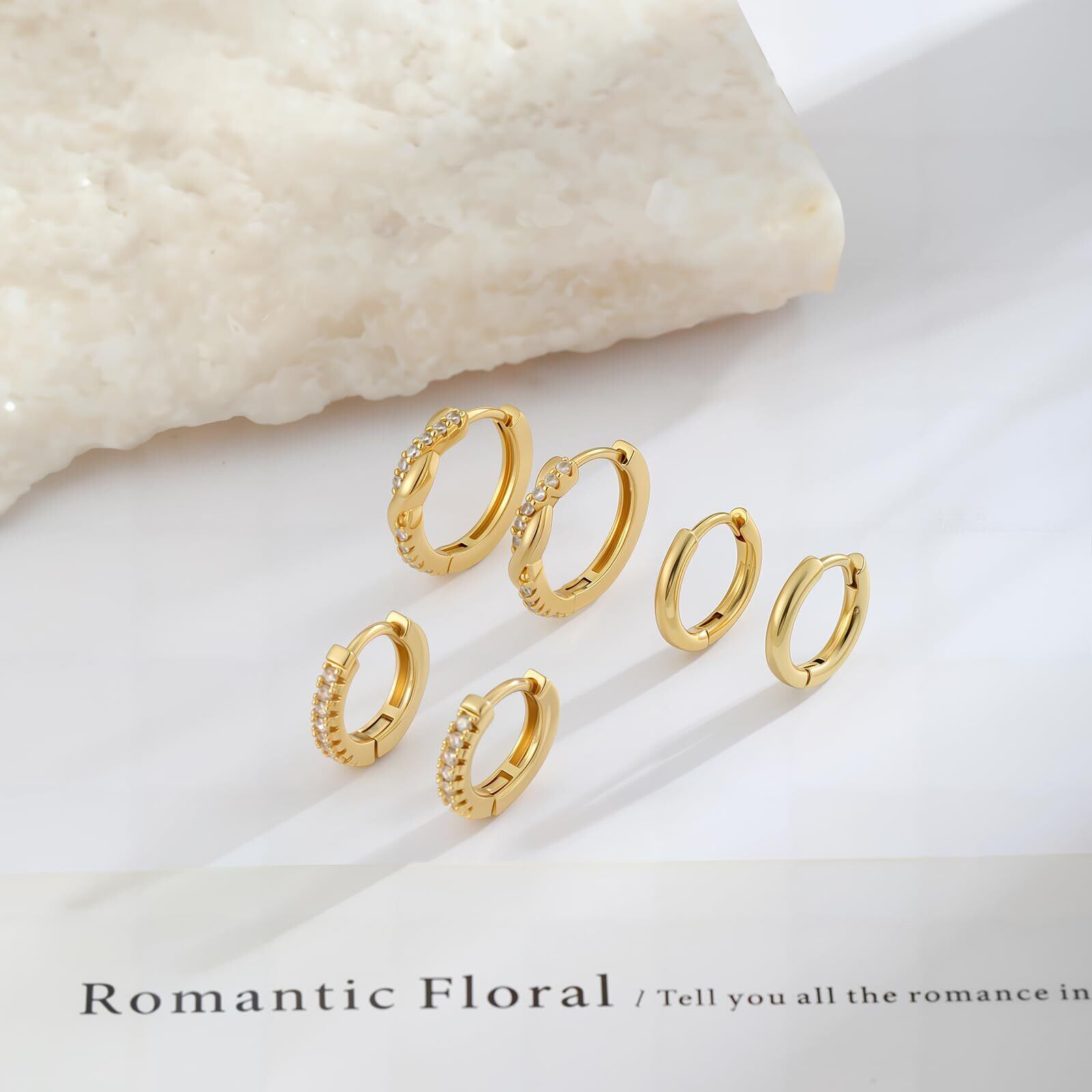 【Mesaro】3ペア ピアス レディース フープピアス リングピアス サークル 中折れ キャッチレス 開閉式 ジルコニア シルバー ゴールド 小さめ 小さい 小振り 小ぶり シンプル つけっぱなし 両耳用 セット 男女兼用 ユニセックス 金属アレルギー対応 ギフトBOX付き