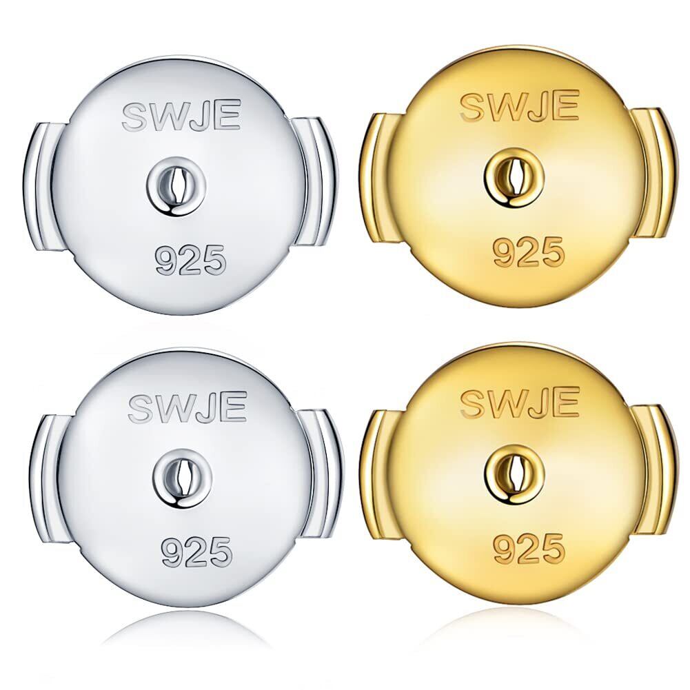 ピアスキャッチ 落ちないくん シルバー925 取れにくい ピアス キャッチ アクセサリーパーツ 人気 両耳用 2ペア(4個)(シルバー2個+ゴールド2個) 金属アレルギー対応 ピアスロック 備用 下向き防止デザイン