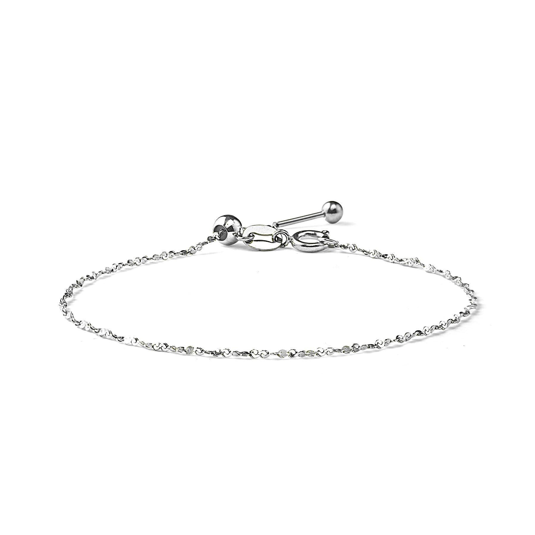 【人気商品】ブレスレット レディース 細め 極細 メンズ キラキラ スキン スキンジュエリー 華奢 つけっぱなし サージカルステンレス ステンレス 金属アレルギー対応 アジャスター付き シルバー ゴールド