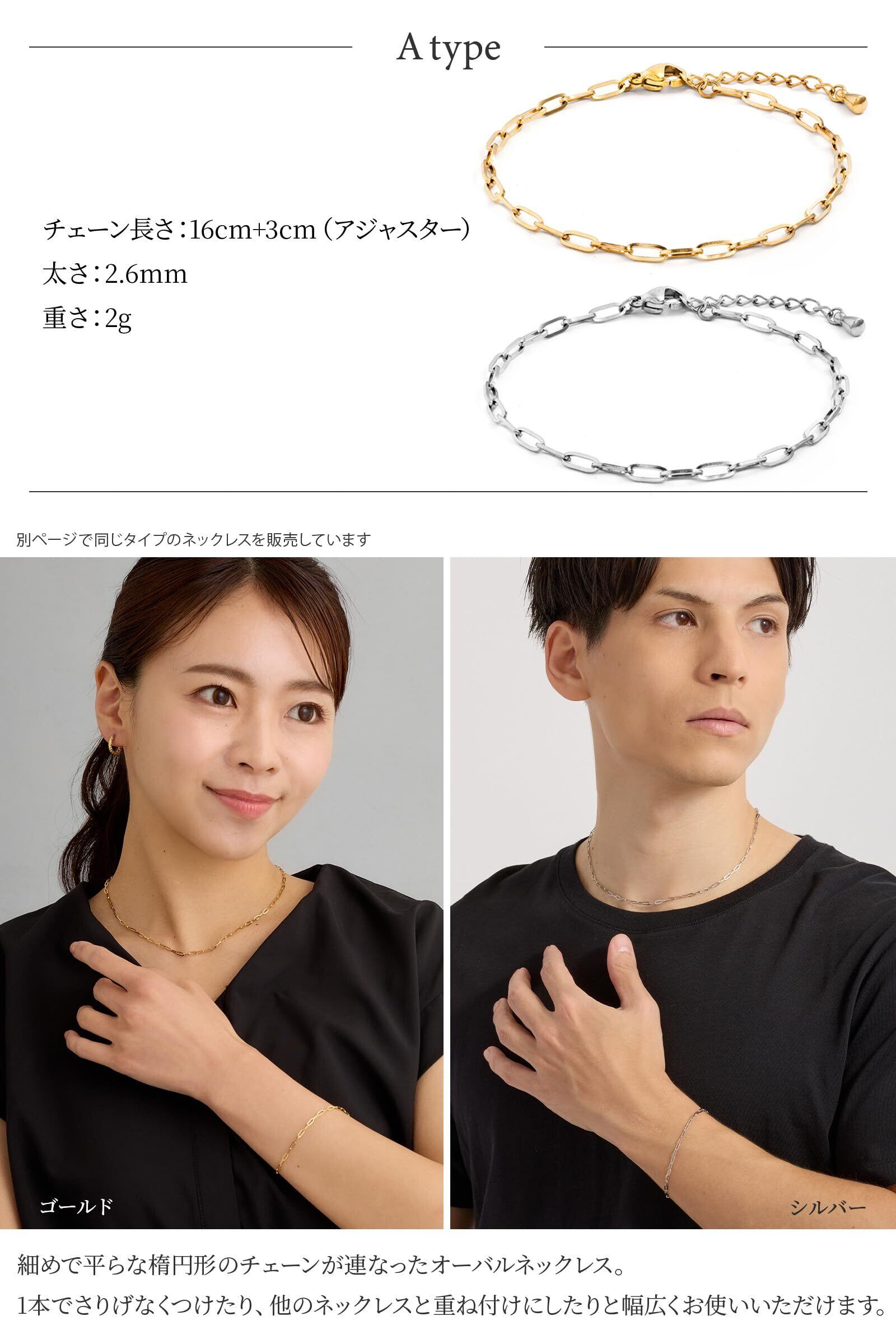 【上品で洗練された輝きを放つ、細身のオーバルチェーンブレスレット】 毎日のコーデにさりげない華やかさをプラスする万能アクセサリーです。 細めのチェーンが繊細な印象を与え、手元をスマートに演出してくれます。