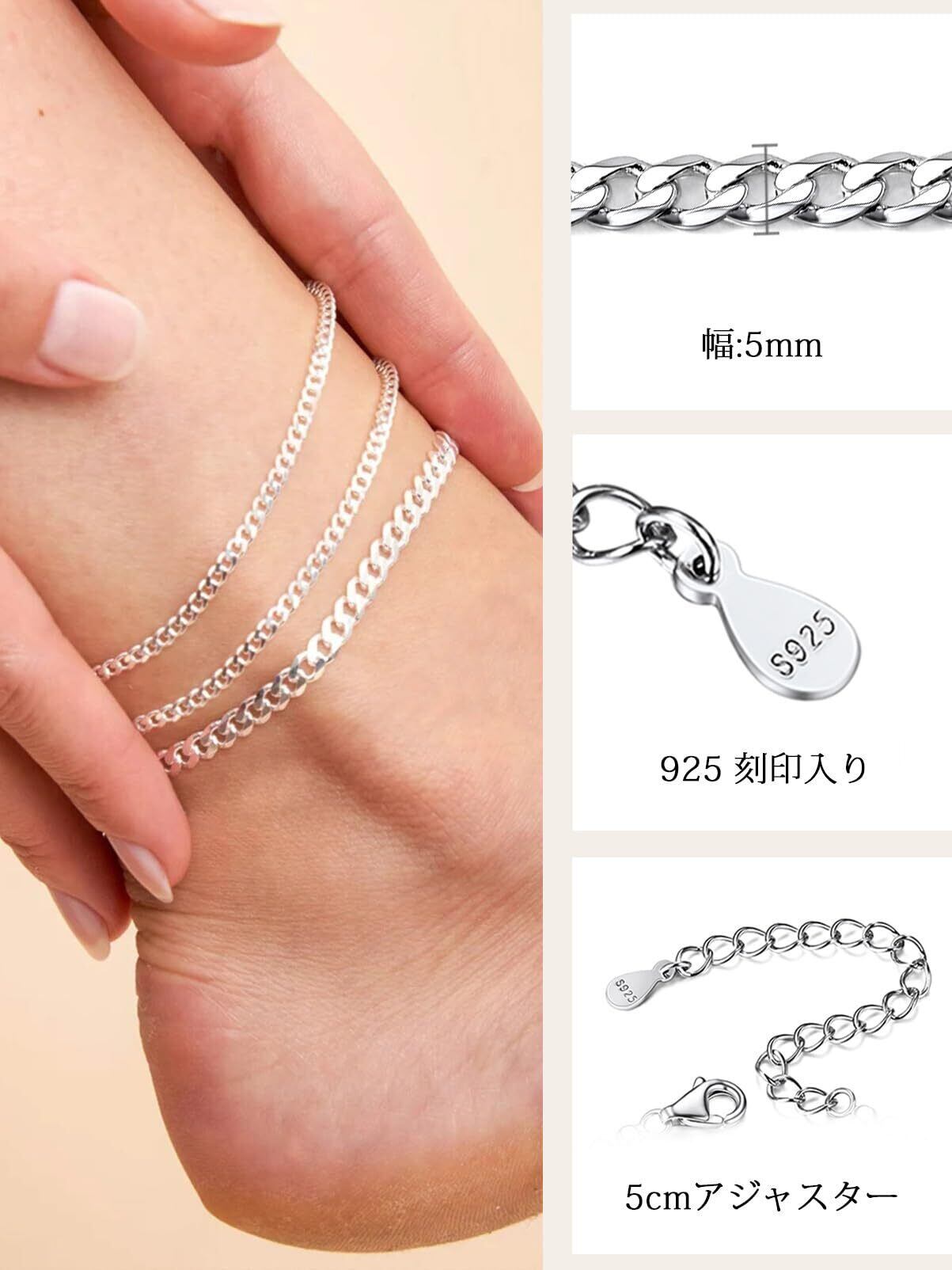 ChicSilver シルバー925 アンクレット レディース 人気 喜平チェーン 22cm+5cmアジャスター アクセサリー