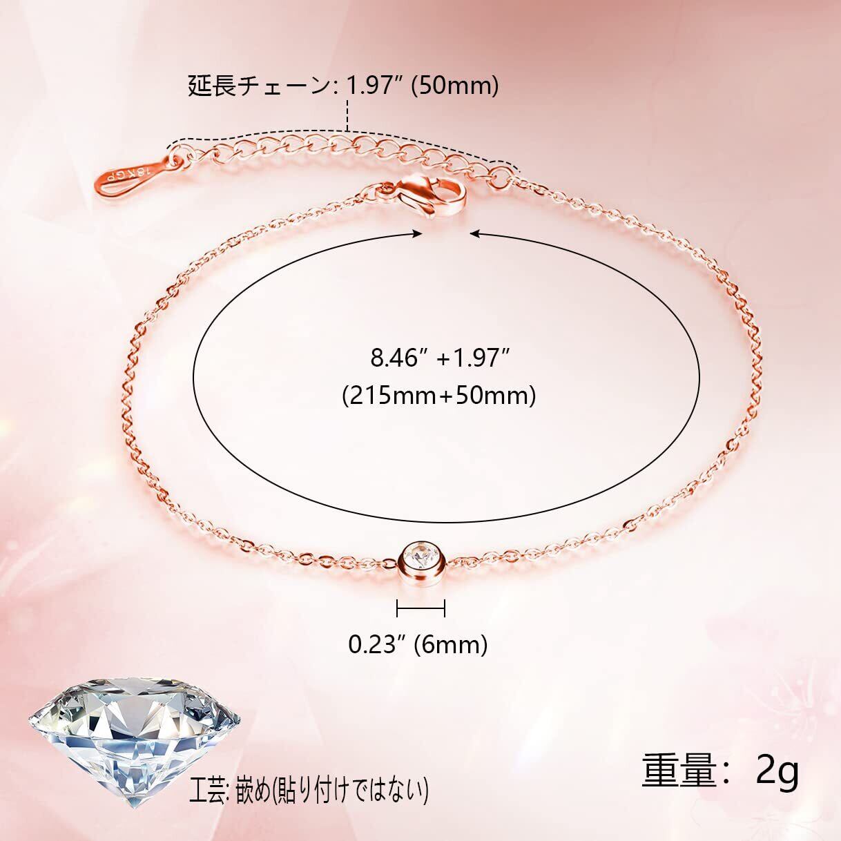❀【アンクレット レディース素材】サージカルステンレス316L ローズゴールドメッキ。レディースアンクレットは、ロマンチックな夏に最適しているアクセサリー。