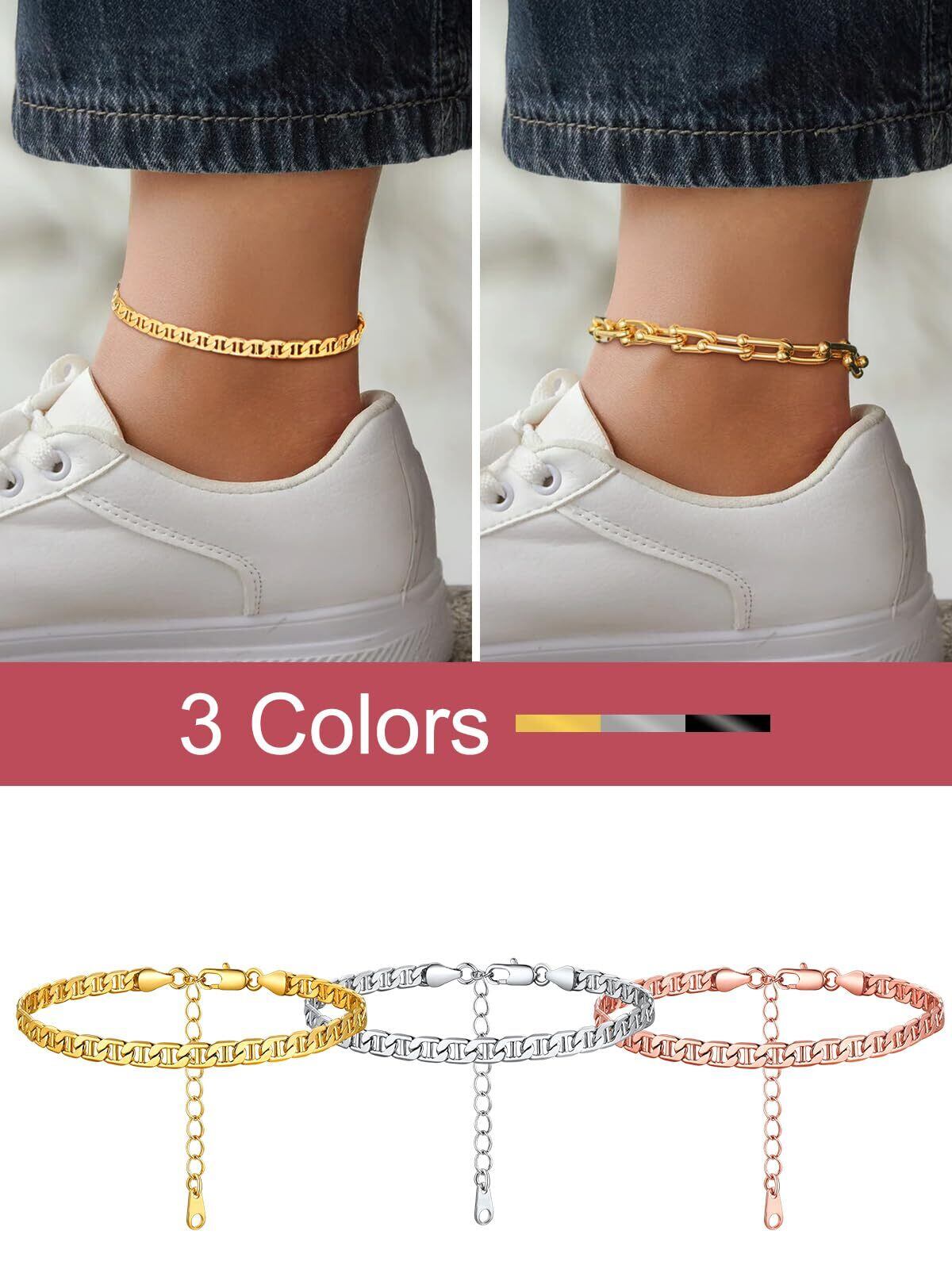 【チェーンアンクレット】全長約22cm+5cm(アジャスター付き)、チェーン幅:約5/6mm カラー:シルバー/ゴールド/ピンクゴールド/ブラック、人気のアンクレットは二つチェーンタイプを用意して、お好きなアンクレットチェーンを選択してください。