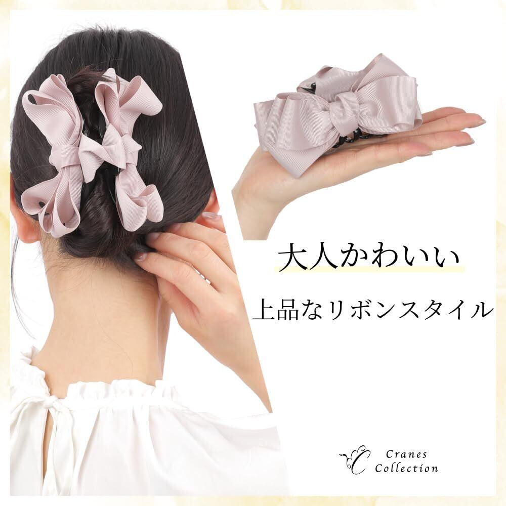 [クレインズコレクション] リボン バンスクリップ 日本製 デイリーで使える 大きめ 大人 ヘアクリップ 挟むだけ カジュアル フォーマル アレンジ 装飾 選べる13カラー GB284 (ブラック)