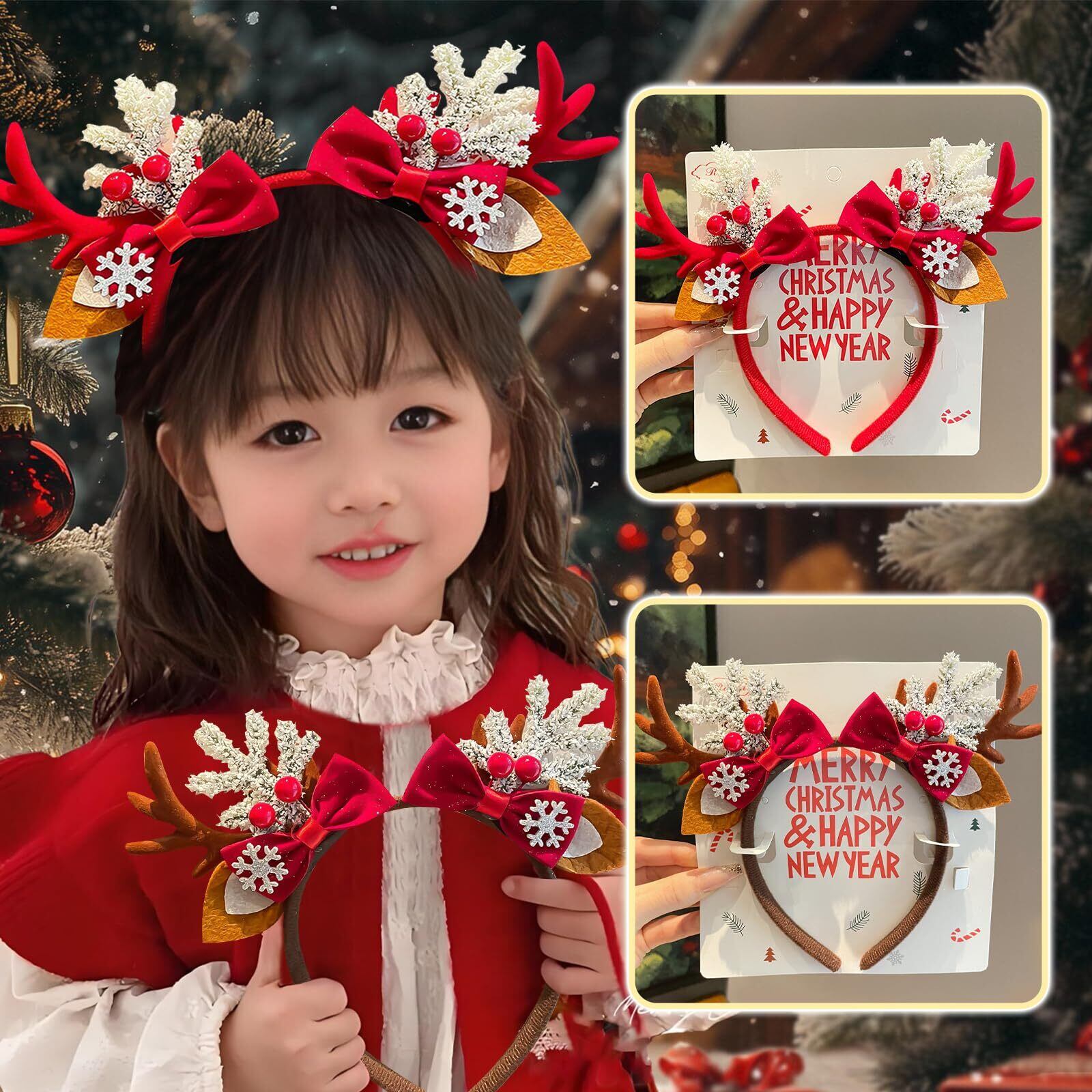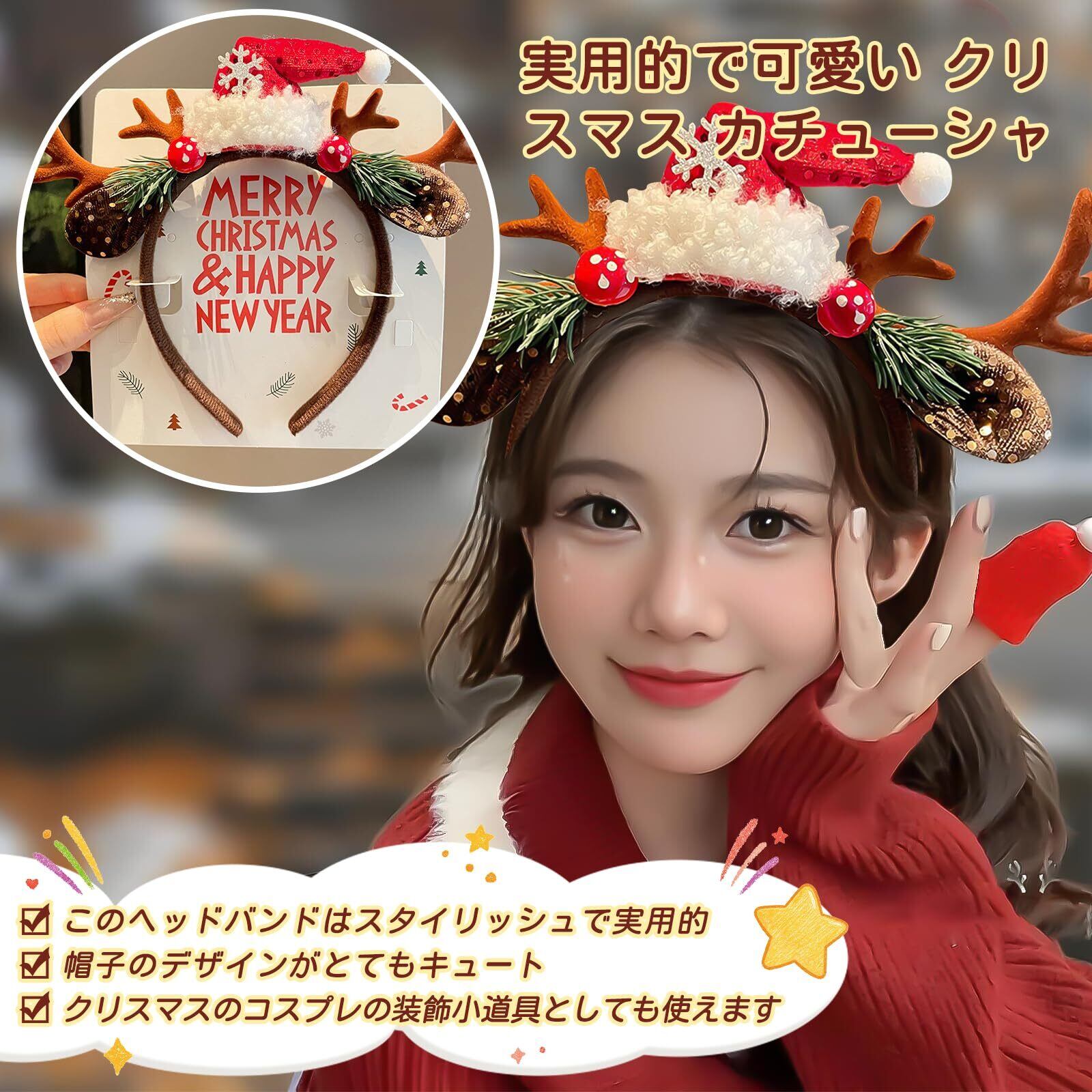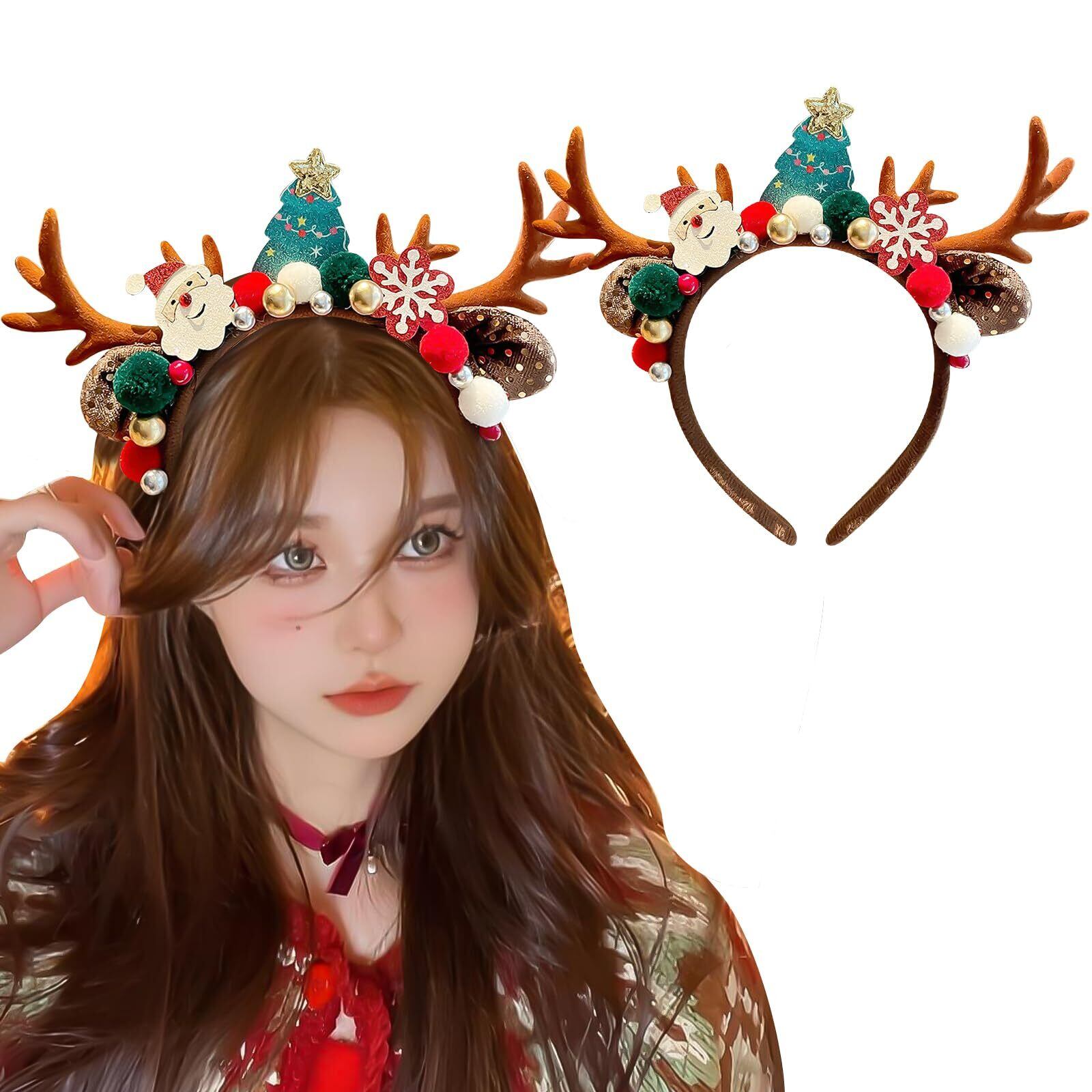 【クリスマス トナカイ ヘッドバンド】トナカイの角、サンタクロース、赤と白の配色、雪の結晶のデコレーションなど、様々なデザインが揃っており、クリスマスの雰囲気を一気に盛り上げてくれます。様々なコスプレにぴったりで、装いに華やかなアクセントを添えてくれます。