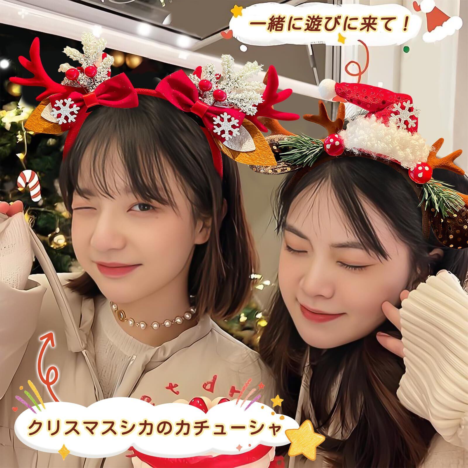 【特価セール】[雲見] クリスマス カチューシャ 大人 トナカイ カチューシャ【2025年クリスマス飾り】 雪の結晶 鹿の角 小道具 雰囲気満々 サンタ レディース 子供 可愛い 小物 前髪留め 髪飾り 仮装 コスチューム用小物 (E)