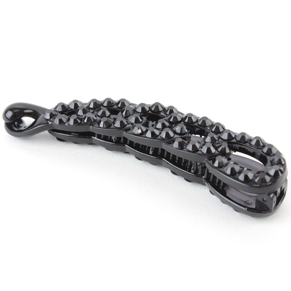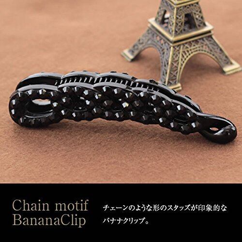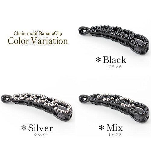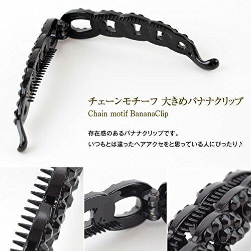 チェーンモチーフ 大きめバナナクリップが登場!! クールなブラックとシルバー、ミックスで彩られた大人のバナナクリップ 上品でハードなチェーンモチーフがクールな装いを演出 バナナクリップは、簡単に付けれて上品に変身出来ちゃう優れものだから、1つは持っておきたいアイテム