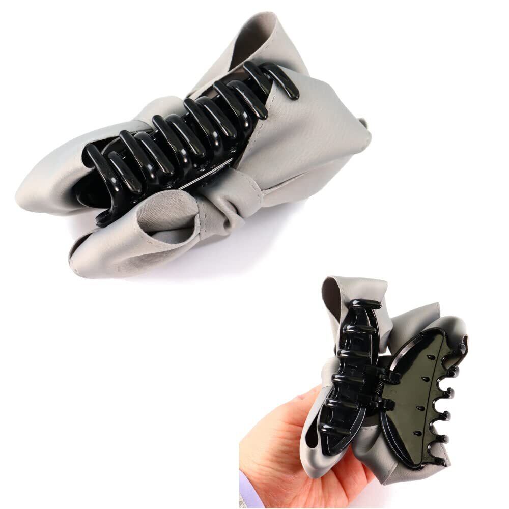 【数量限定】[クレインズコレクション] リボン バンスクリップ 日本製 大きめ 大人 ヘアクリップ カジュアル フォーマル 髪留め アレンジ バンスクリップ 交換付 グレー GB2311