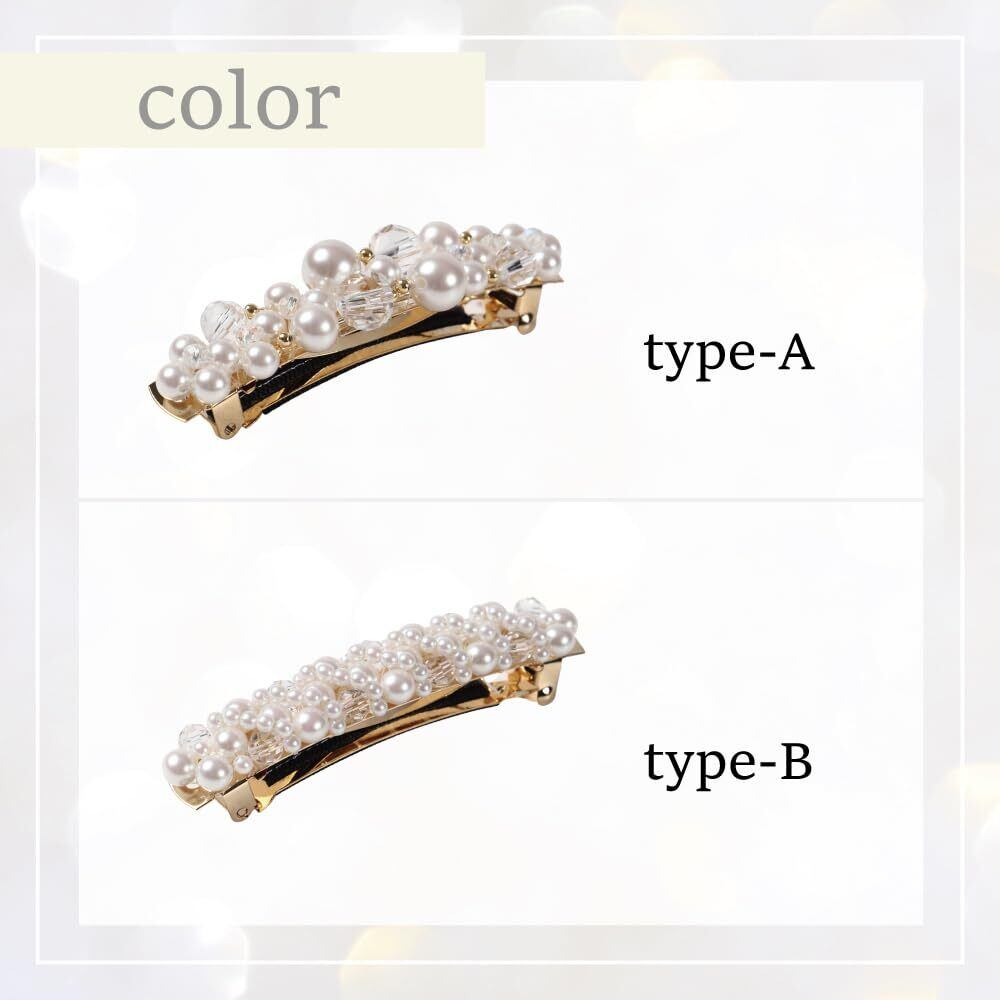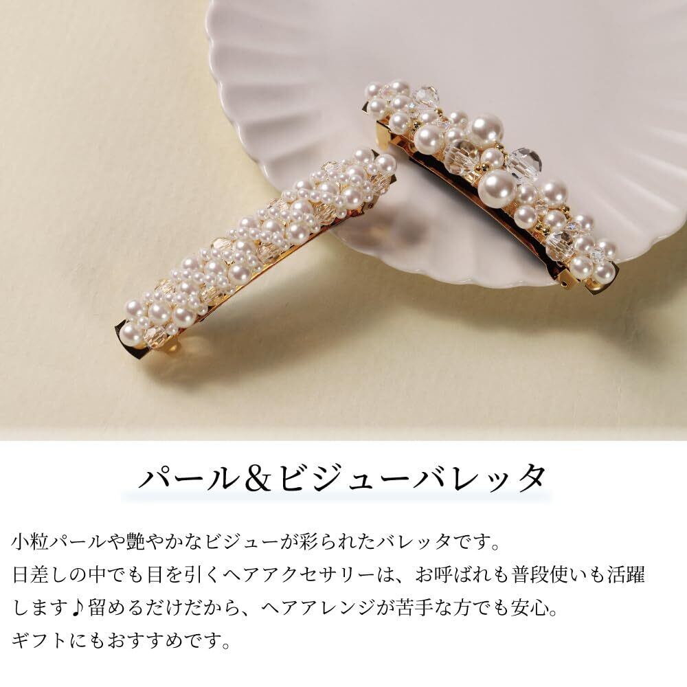 [クレインズコレクション] パール ビジュー バレッタ ヘアアクセ 日本製 大人 挟む お洒落 上品 アレンジ 映え 装飾 滑り止め ロゴ入巾着付 (タイプB)