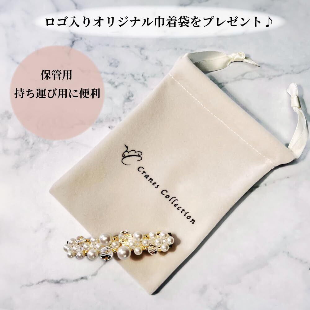 【数量限定】[クレインズコレクション] パール ビジュー バレッタ ヘアアクセ 日本製 大人 挟む お洒落 上品 アレンジ 映え 装飾 滑り止め ロゴ入巾着付 (タイプB)