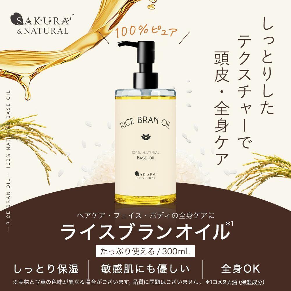 SAKURA&NATURAL ライスブランオイル 300mL 天然100% マッサージオイル 無添加 ボディオイル クレンジングオイル 大容量 業務用 保湿 マッサージ 無香料 ボタニカル 米油 米ぬか キャリアオイル ボディ用