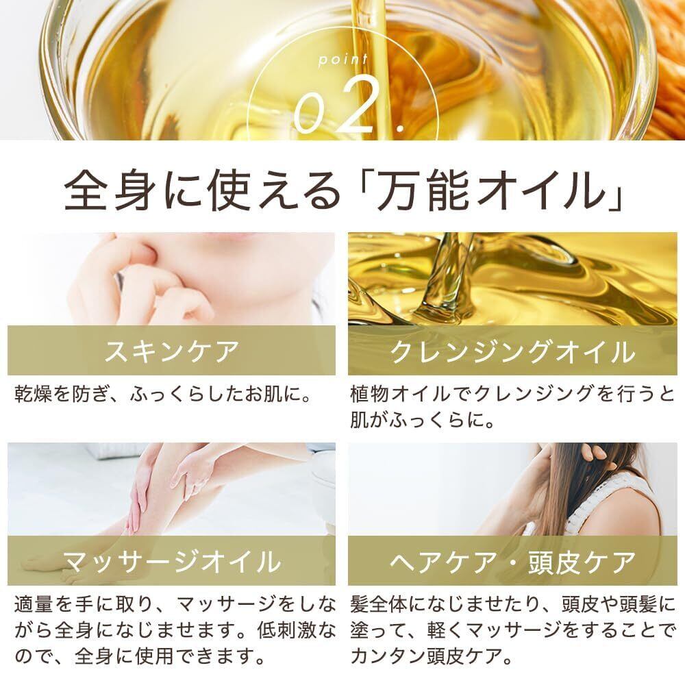 【オススメの使い方】 ①洗顔後の保湿ケアに。洗顔の後にしっかりと水気をふきとり、化粧水と乳液を馴染ませた後に全体に浸透させます。 ②マッサージオイルに。適量を手に取り、マッサージをしながら全体に浸透させます。ゆっくりと揉みほぐしてください。 ③デリケートゾーンオイルに!デリケートゾーンのケアにもお使い頂けます(※アレルギー反応が起きやすい方はご使用をお控えください) ④髪に艶と潤いを。お風呂上がりにタオルで髪の水気を拭き取った後に、適量を取り毛先を中心に髪全体に馴染ませドライヤーをかけます。 メーカー名:武内製薬株式会社
