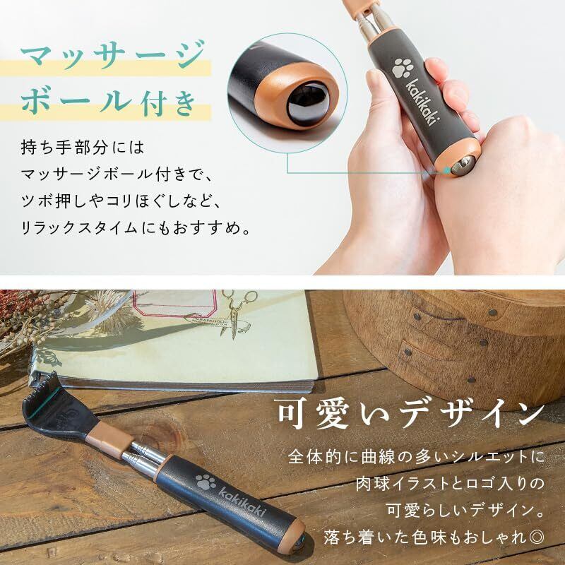 かゆいところに手が届く、伸縮自在の孫の手「kakikaki」。 最小約21.5cmから最大約54cmまで伸びるので、背中や腰など自分では届きにくい場所も簡単にケアできます。 二本構造のステンレス伸縮棒を採用し、伸ばしても「しならない」安定感が特長。力をしっかり伝えられるので、満足感のあるかき心地を実現しました。 先端は丸く加工されたプラスチック製で、強すぎず弱すぎない絶妙な刺激。直接肌に使っても、衣類の上からでも快適にかける優しい設計です。 さらに、持ち手部分にはかわいい肉球マークと「kakikaki」ロゴ入りでデザイン性も抜群。ユニークで癒されるフォルムは、ご自宅用はもちろん、プレゼントにも最適です。 また、柄の先端には「マッサージボール」を搭載。背中をかくだけでなく、肩や腰のツボ押しにも使える2WAY仕様で、日常のちょっとしたリフレッシュにも役立ちます。 軽量で持ち運びやすいので、ご家庭だけでなく旅行や出張のお供にもおすすめ。 かゆみ解消+リラックス効果を兼ね備えた、孫の手です。