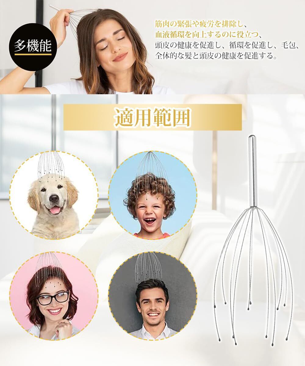 頭皮マッサージ 20本指ハンドヘルドヘッドマッサージツール ツボ刺激 頭皮ゾクゾク快感 頭スッキリ 血行促進 ストレス解消