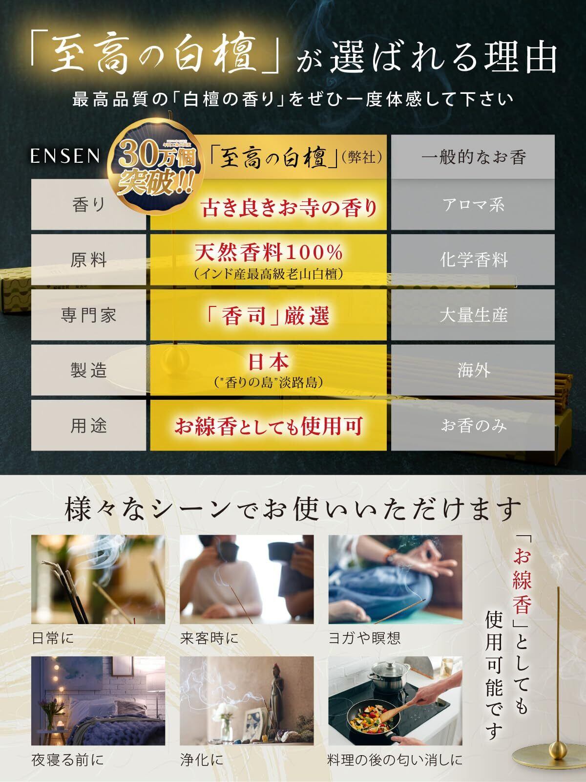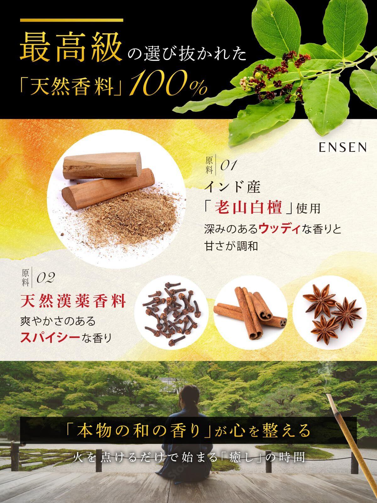 【 天然香料100%使用 】お香 線香 最高級の老山白檀 日本製 [古きよきお寺の香り] 約60本入 香立なし スティック 香木 びゃくだん サンダルウッド 浄化 ENSEN