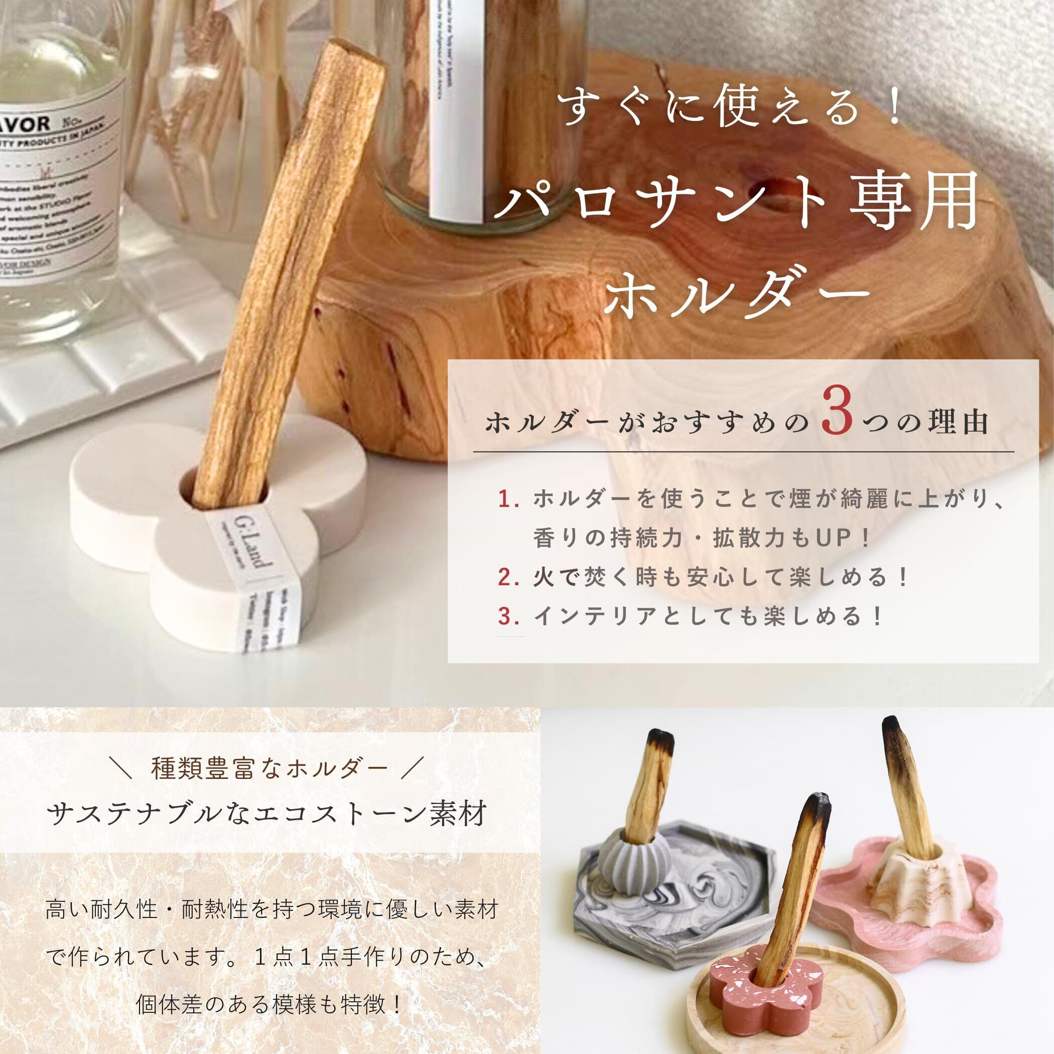 【ワシントン条約で保護対象のパロサント】 パロサントは現在ワシントン条約で保護対象となっているため伐採は禁止されています。この製品はパロサントの木を傷つけることなく森の中で自然倒木した木のみを処理しています。パロサントの中でも高い香りを持つ倒木してから数年を経過した希少なパロサントの木のみを使用しています。