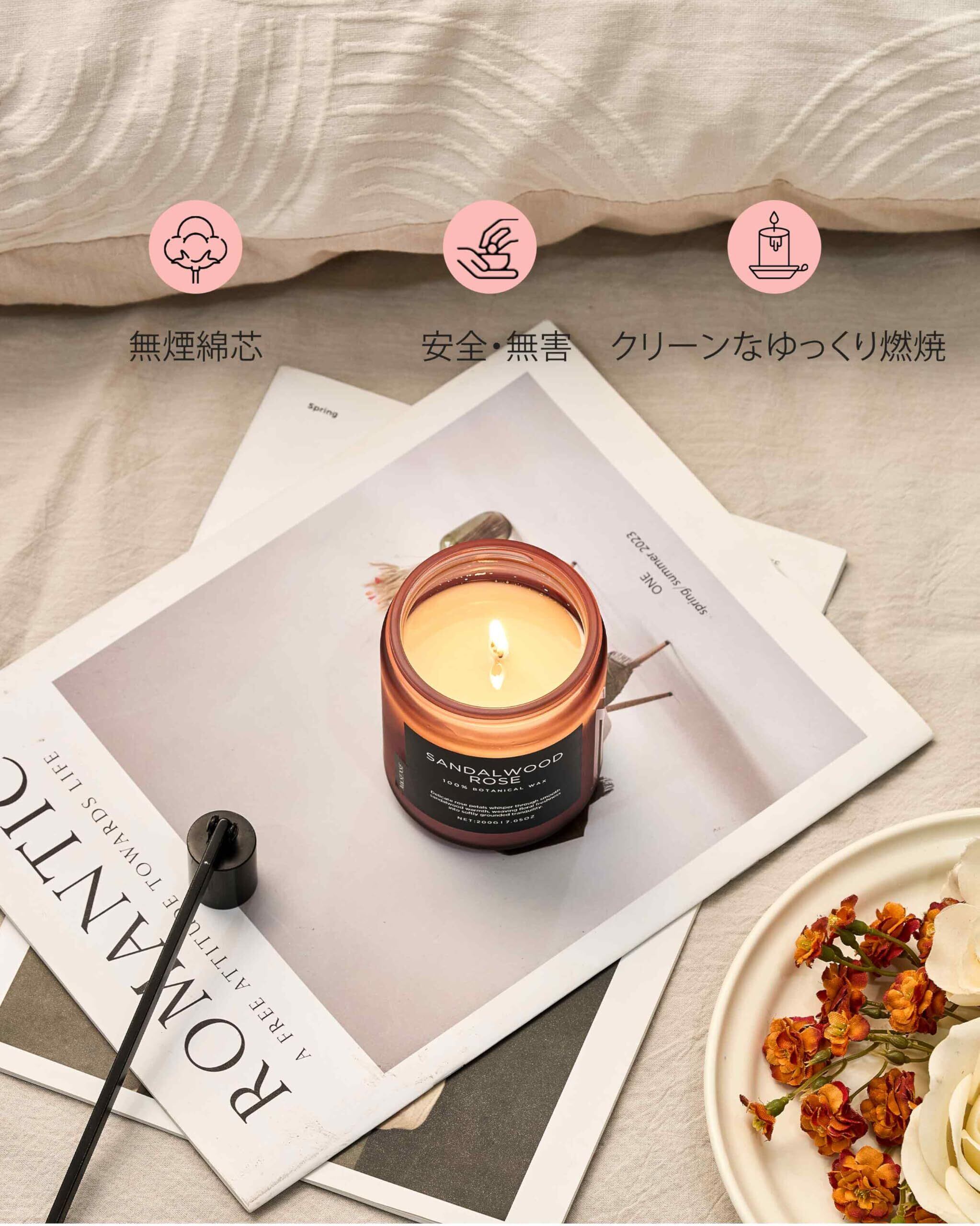 【2022最新】M&SENSE アロマキャンドル ミニ キャンドル サンダルウッド ・ローズの香り 燃焼時間50時間 200g ソイワックス ジャーキャンドル ホワイトデー バレンタイン 母の日 バレンタイン リラックス ギフト プレゼント