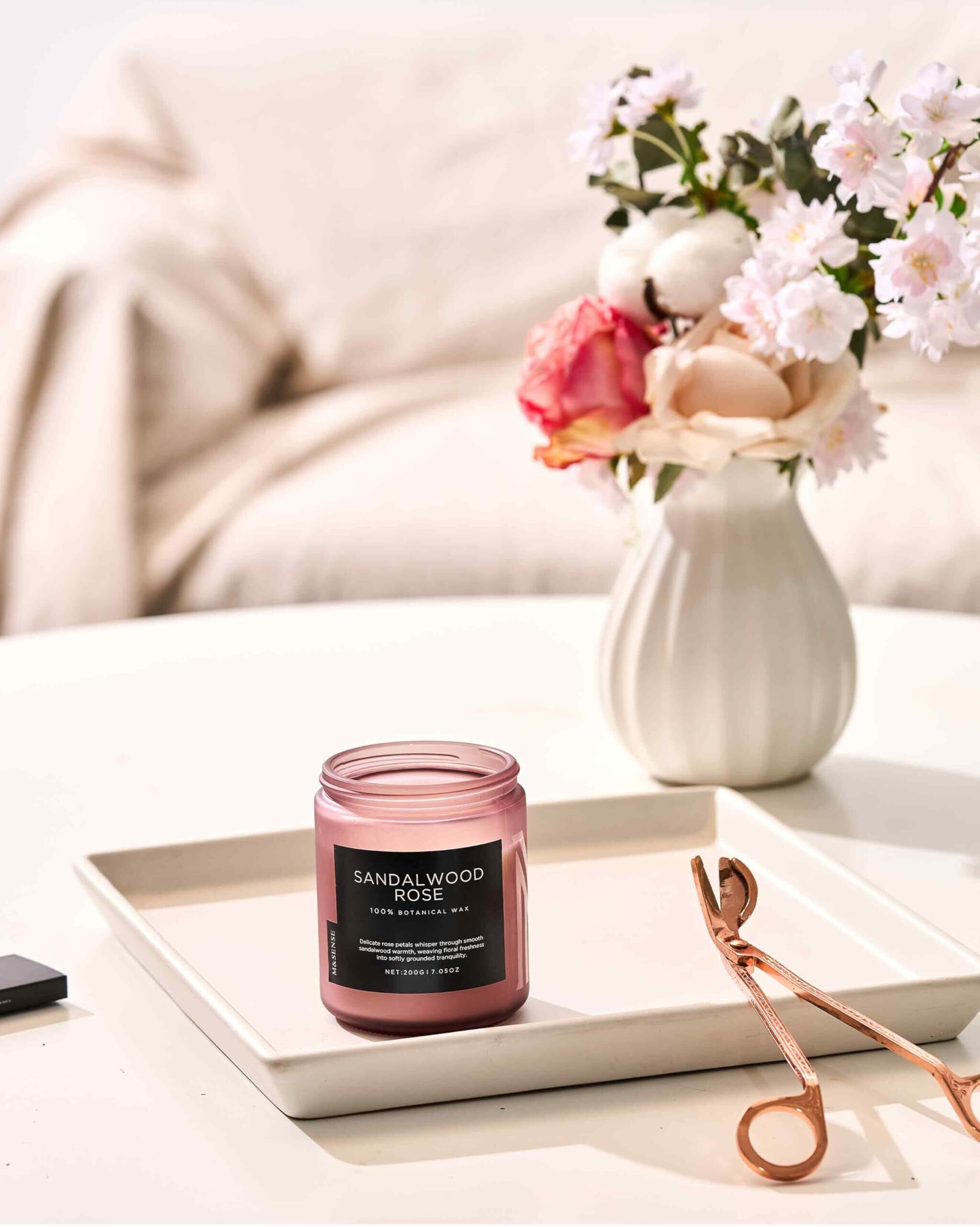 M&SENSE アロマキャンドル ミニ キャンドル サンダルウッド ・ローズの香り 燃焼時間50時間 200g ソイワックス ジャーキャンドル ホワイトデー バレンタイン 母の日 バレンタイン リラックス ギフト プレゼント