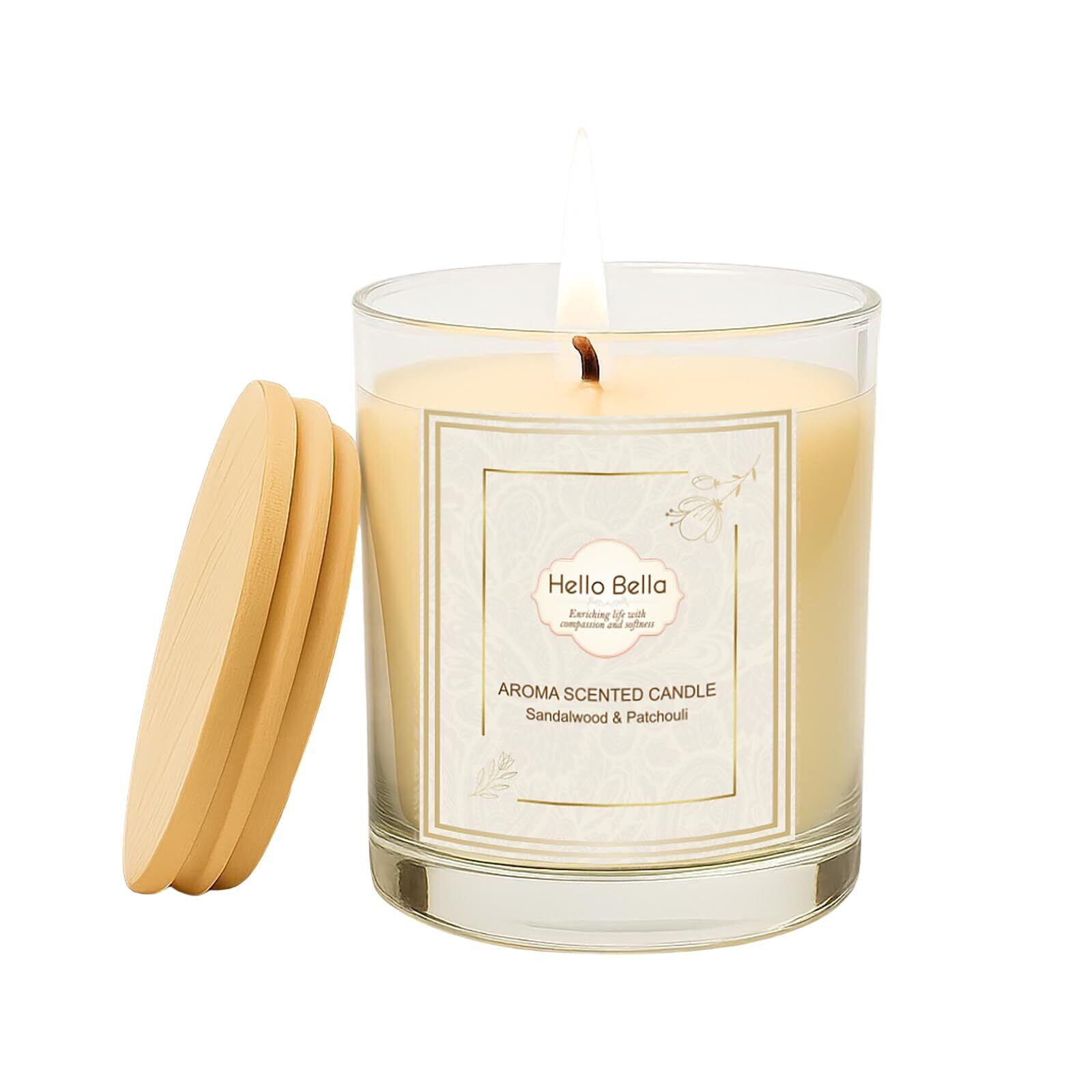 Hello Bella アロマキャンドル サンダルウッド&パチュリー 240g 天然素材 ソイワックス ギフト プレゼント (パチュリー)