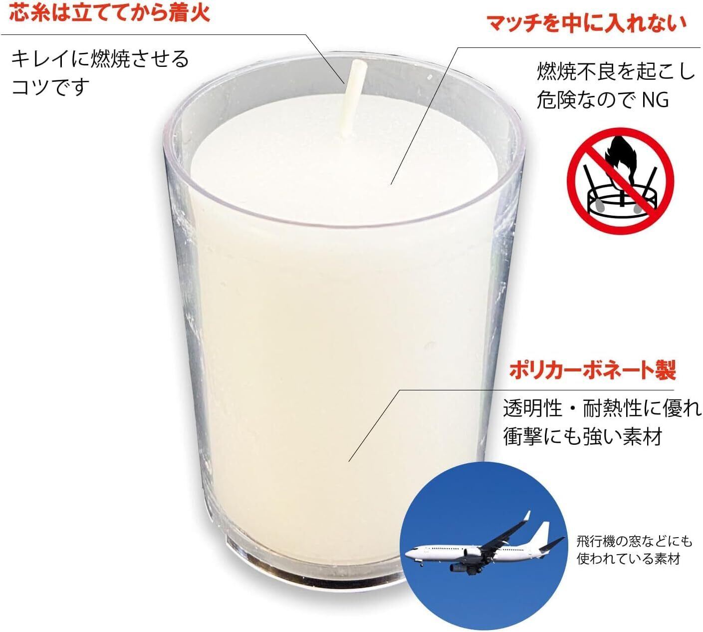 このローソクのカップはPC(ポリカーボネート)を使用していますので、熱に強く安全性の高い商品です。