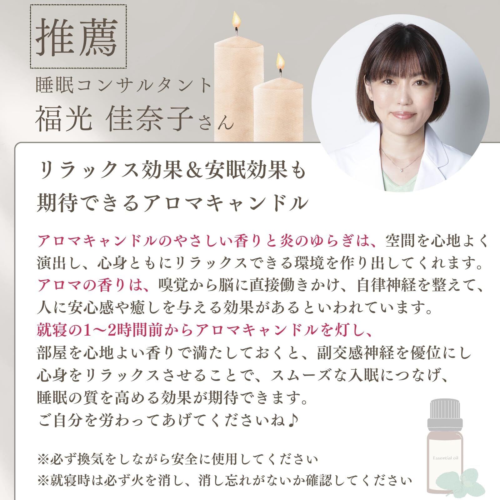 【6種類の香り】 このアロマキャンドルギフトセットにはの6つのフレグランスが含まれます。アロマテラピーをご家庭でいつでもお楽しみいただけます。スタンダートなラベンダー・ピーチ・ローズ・ハニー・ザクロ・キューカンバーの6種それぞれの独特の香りが漂い、リラックスして幸せな気分になります。 アロマキャンドルの香りは心地よい雰囲気を演出し、ストレス解消や気分の改善にも役立ちます。