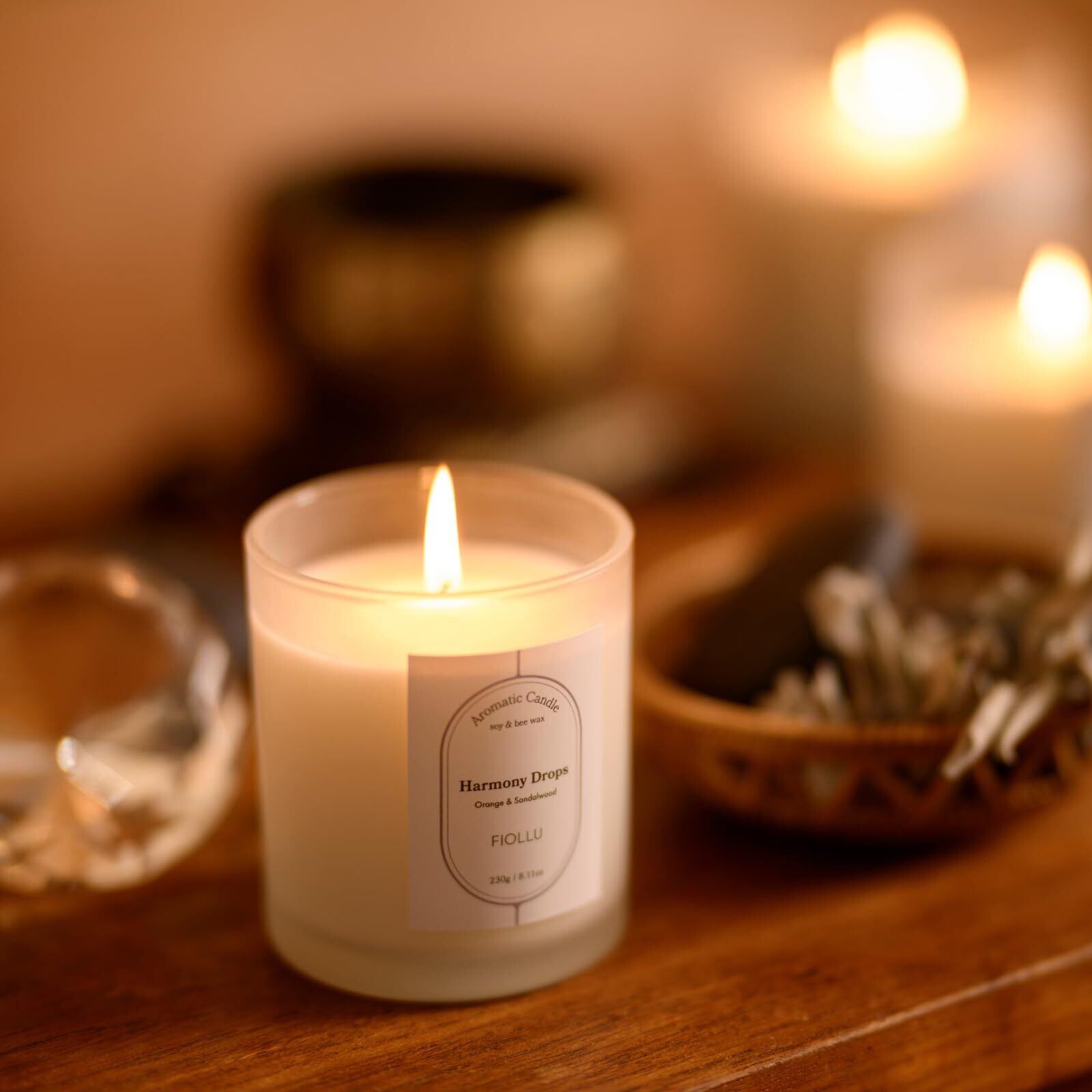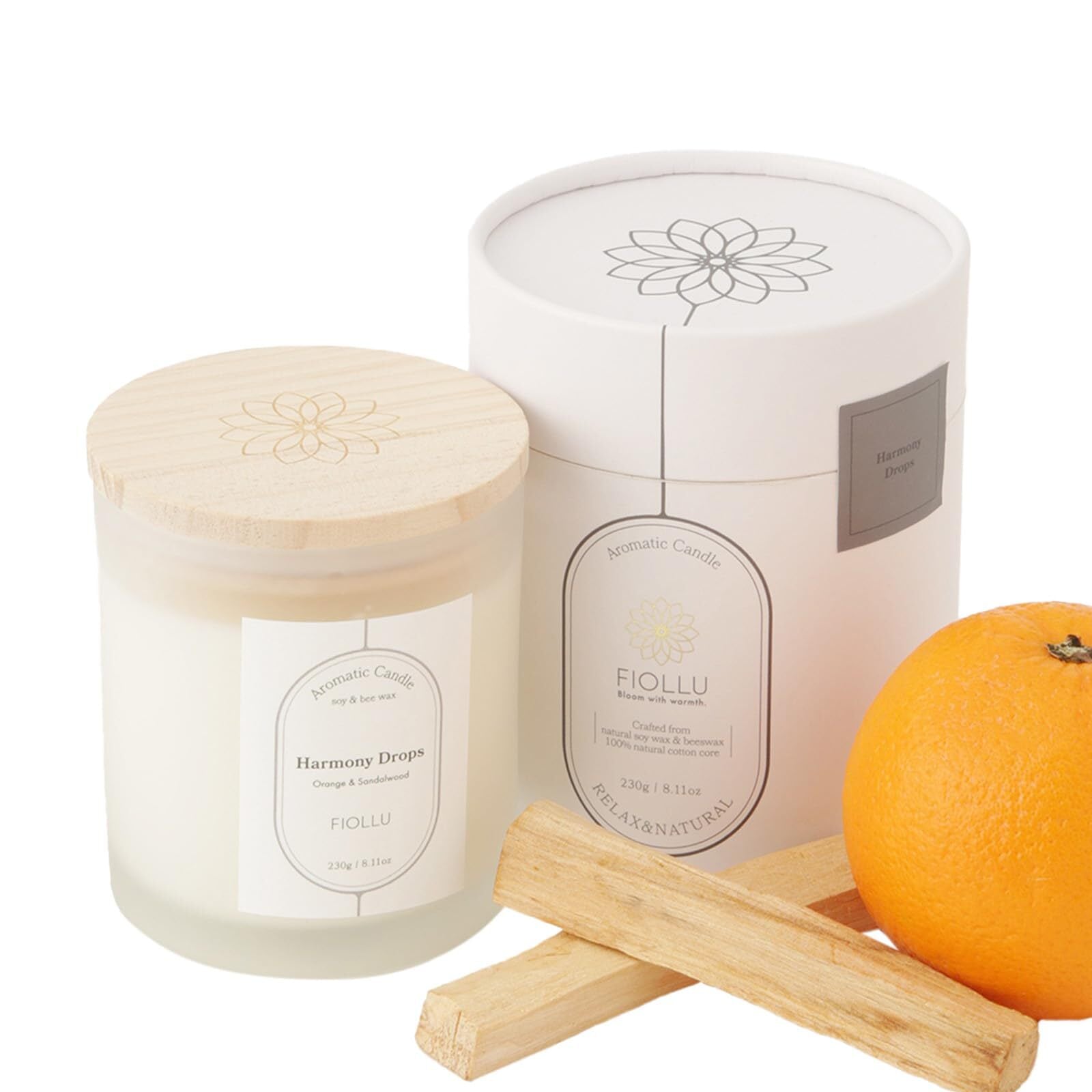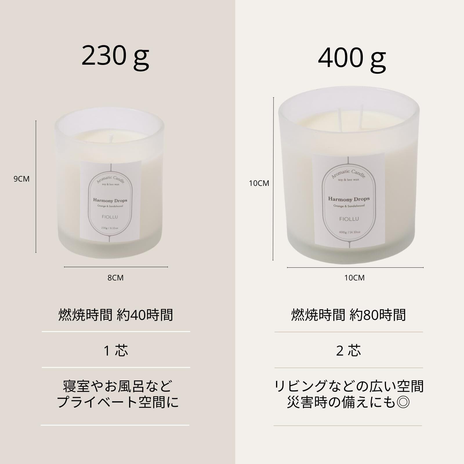 アロマキャンドル 燃焼約40時間 (サンダルウッド、オレンジ) 【アロマセラピスト監修】天然ソイワックス&蜜蝋 癒し 無煙綿芯230g ギフト Harmony Drops