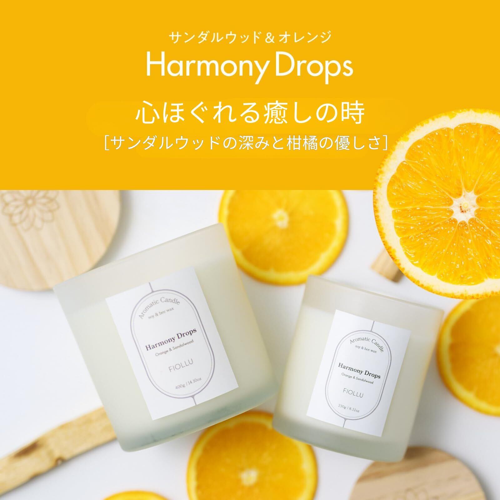 【特価セール】アロマキャンドル 燃焼約40時間 (サンダルウッド、オレンジ) 【アロマセラピスト監修】天然ソイワックス&蜜蝋 癒し 無煙綿芯230g ギフト Harmony Drops