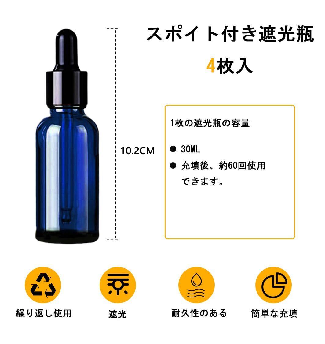 スポイト瓶 30mL 4本セットガラス製 遮光瓶 精油瓶 アロマオイルボトル 小分け(青色)