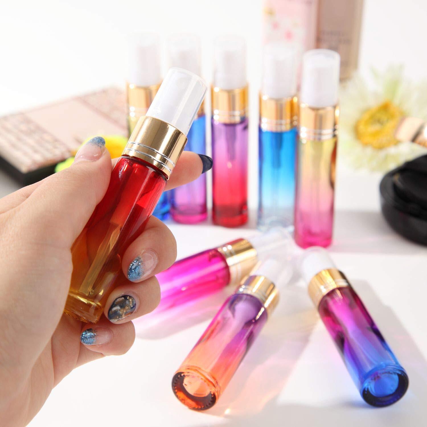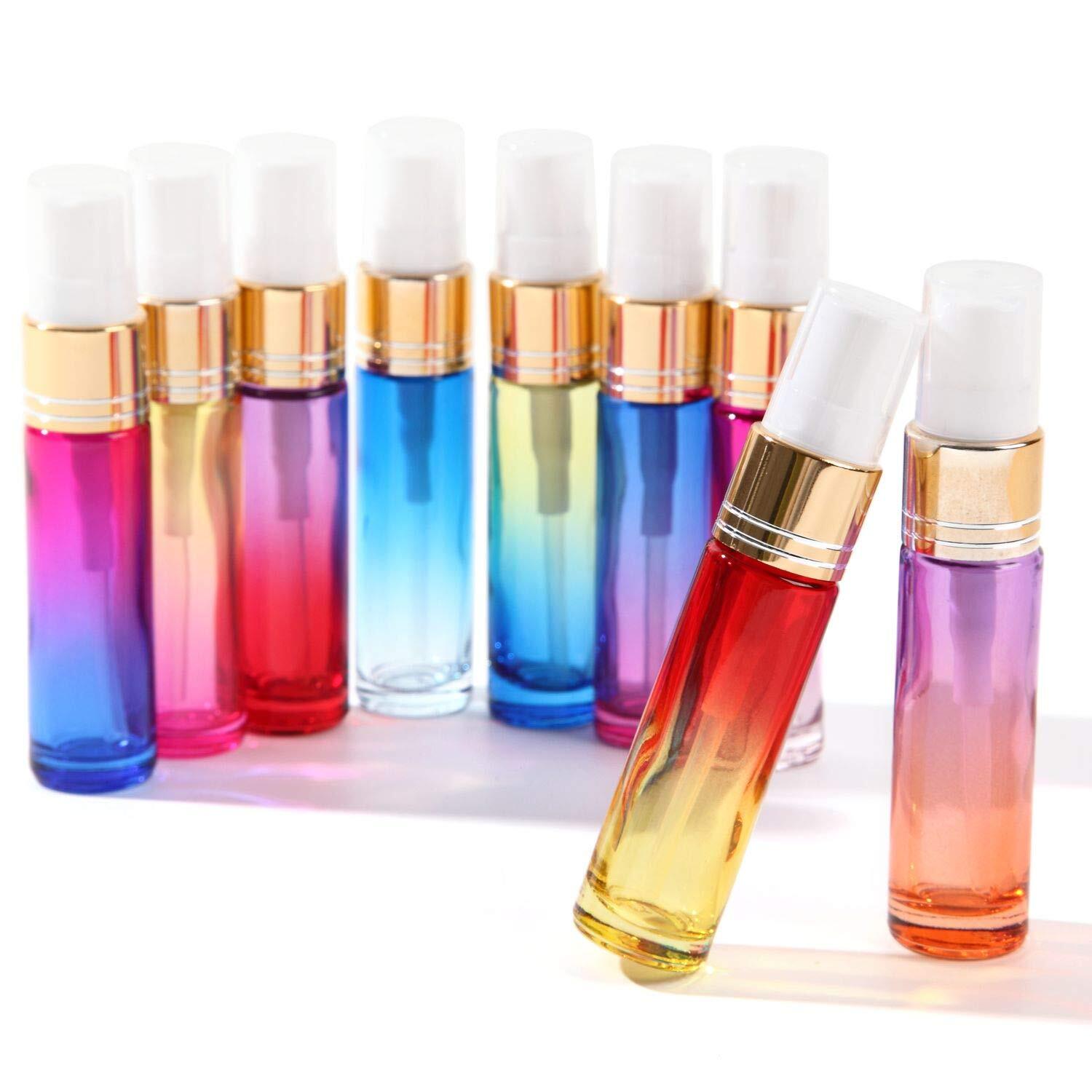Solid Valu 10ml 9本セット カラフル スプレー アロマボトル プッシュオン ミニボトル アトマイザー アロマオイル用瓶 遮光瓶 グラデーションスプレーボトル ガラス製 (9色グラデーション)