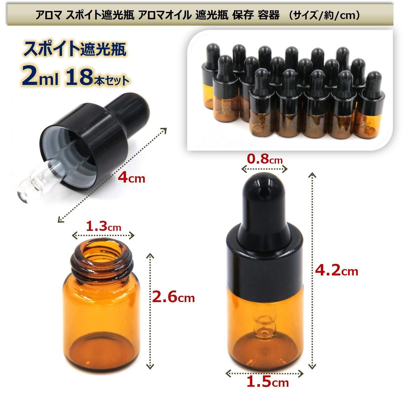 XPデザイン アロマ スポイト遮光瓶 アロマオイル 遮光瓶 保存 容器 小分け 詰め替え 香水 ボトル (2ml18本 セット)