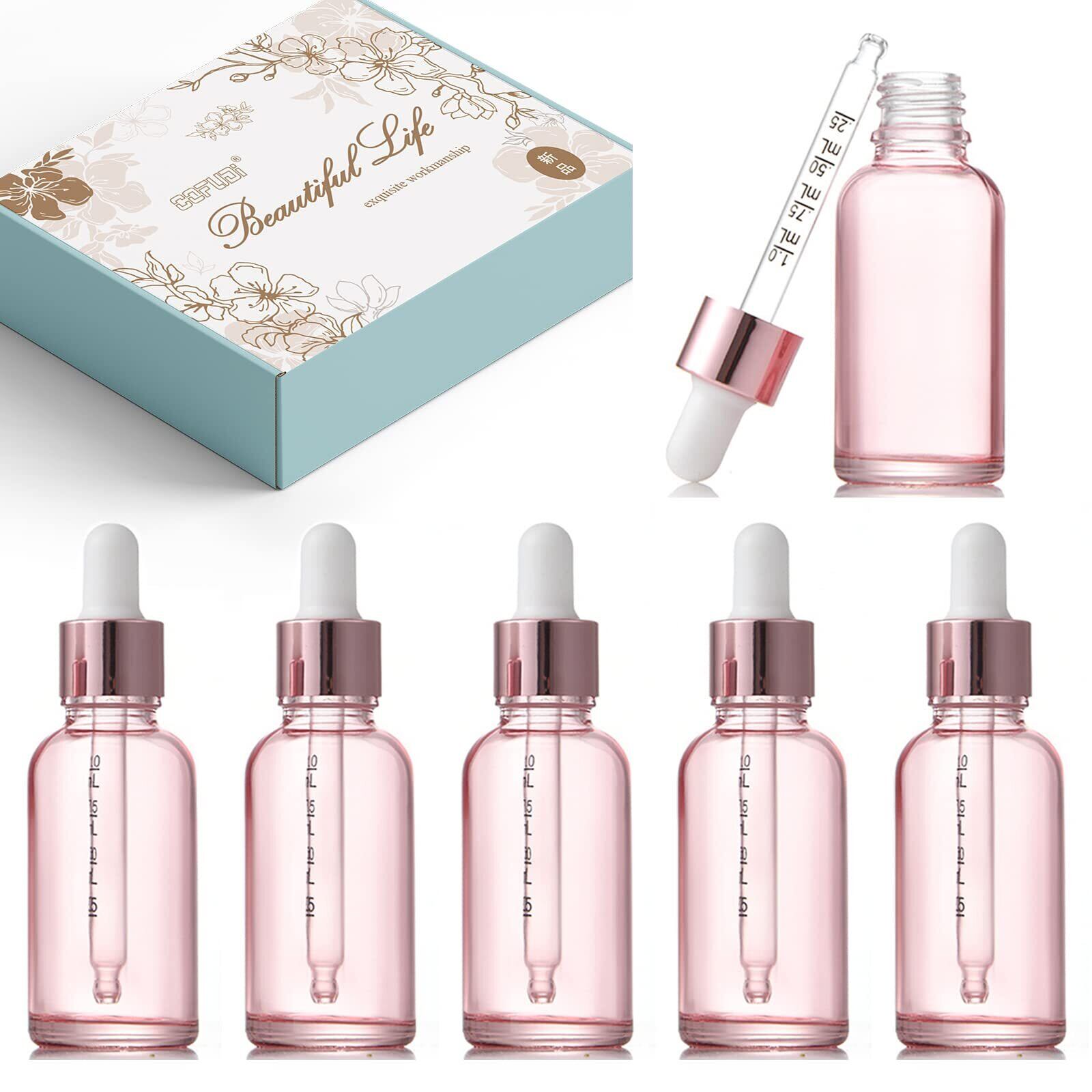 【2022最新】スポイトボトル 30ml 6個 遮光瓶 ピンクコーティングガラスボトル アロマ保存容器 空の詰め替え用ボトル エッセンシャルオイル 香水 (ローズゴールドキャップ付き 計量スポイト)