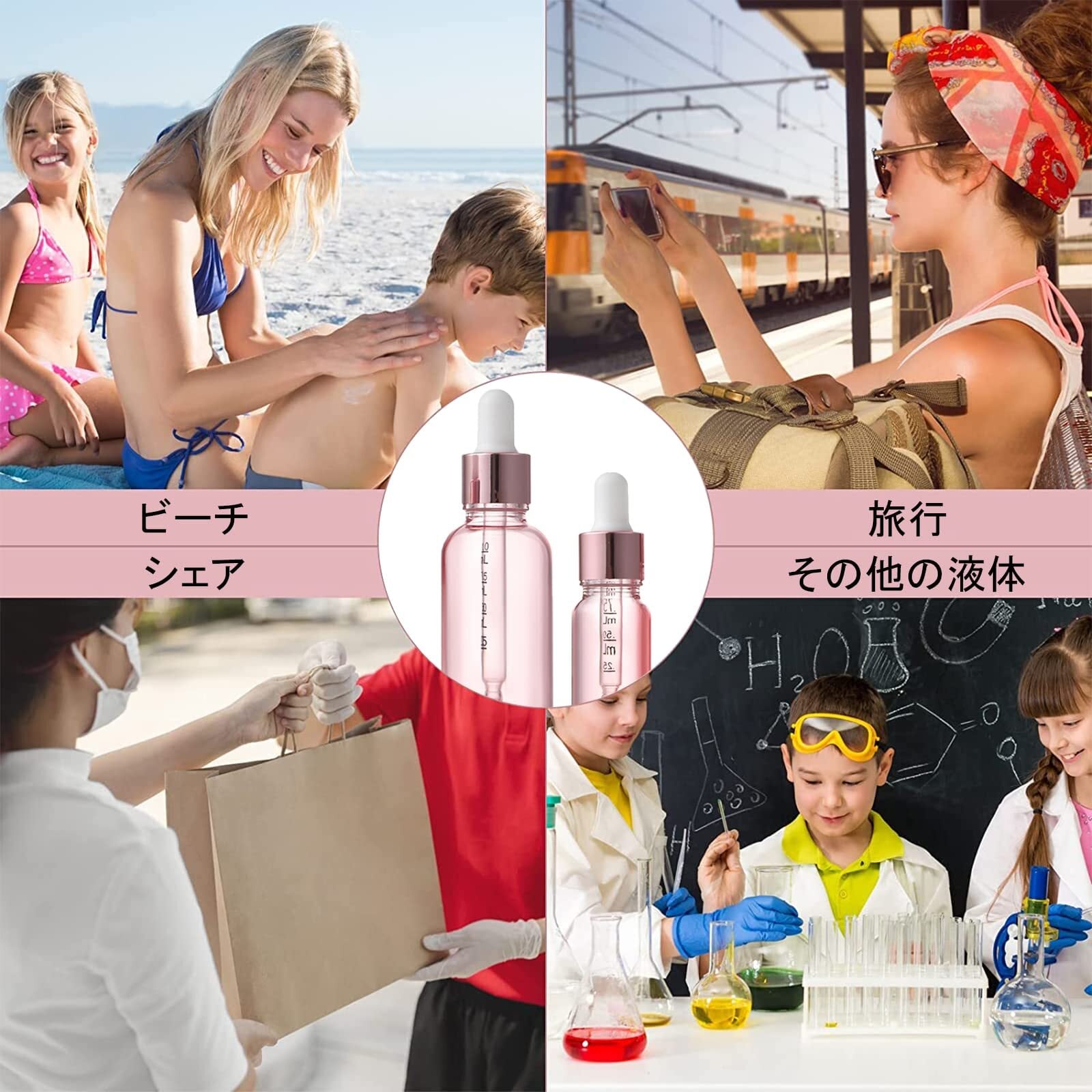スポイトボトル 30ml 6個 遮光瓶 ピンクコーティングガラスボトル アロマ保存容器 空の詰め替え用ボトル エッセンシャルオイル 香水 (ローズゴールドキャップ付き 計量スポイト)
