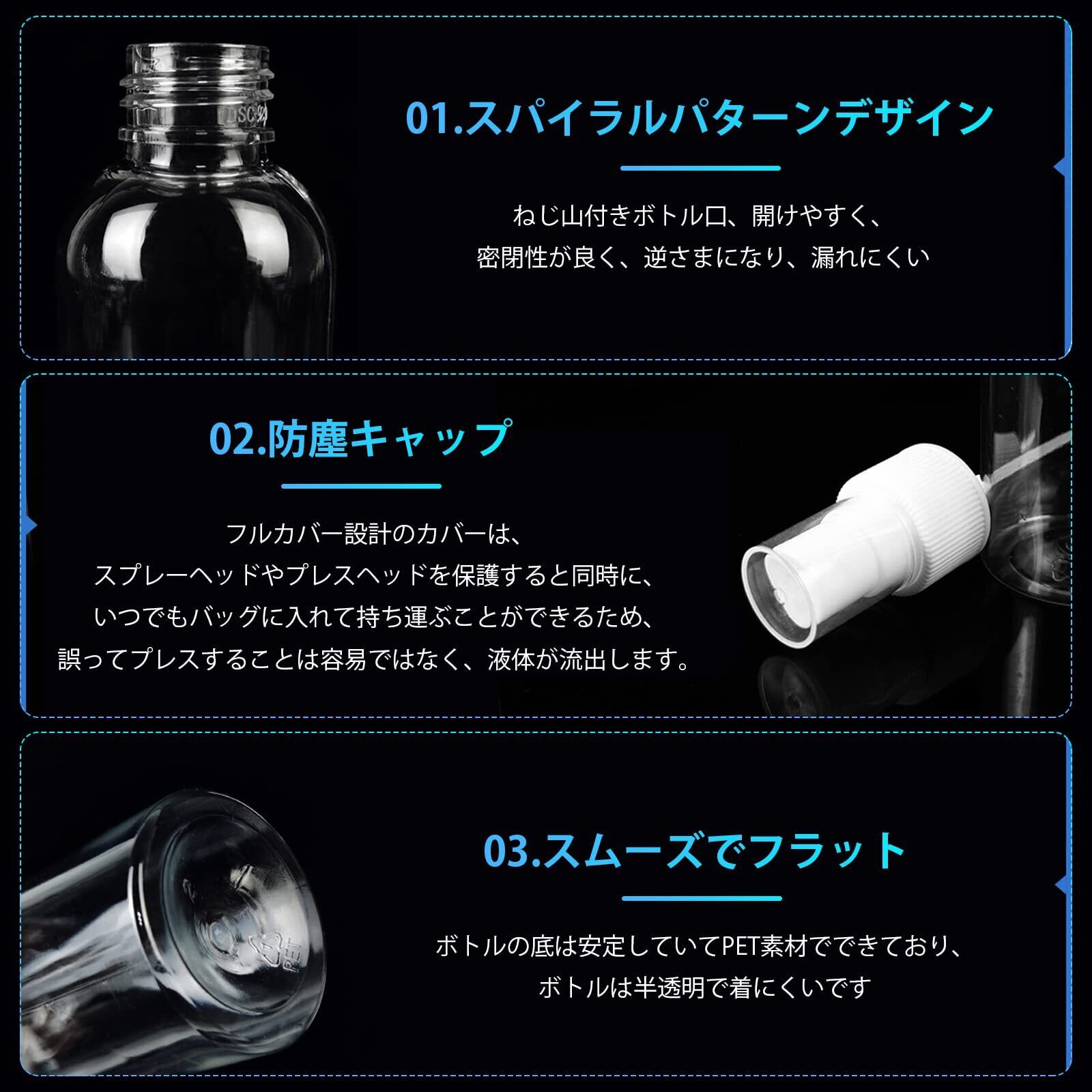 【再利用可能】耐久性のあるボトルは再利用でき、ボトルのねじ山は漏れを防ぎ、快適に使用できます。アルコール、次亜塩素酸水をいけるボトル。