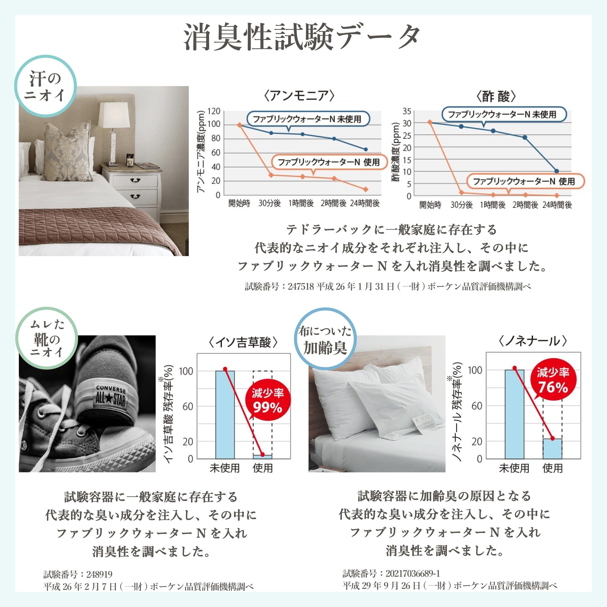 消臭効果:シュッとスプレーするだけで、蒸れたクツのニオイ99%減、布についた加齢臭76%減。汗や部屋干し、生ごみのニオイなど様々なニオイの原因に直接働きかけます。