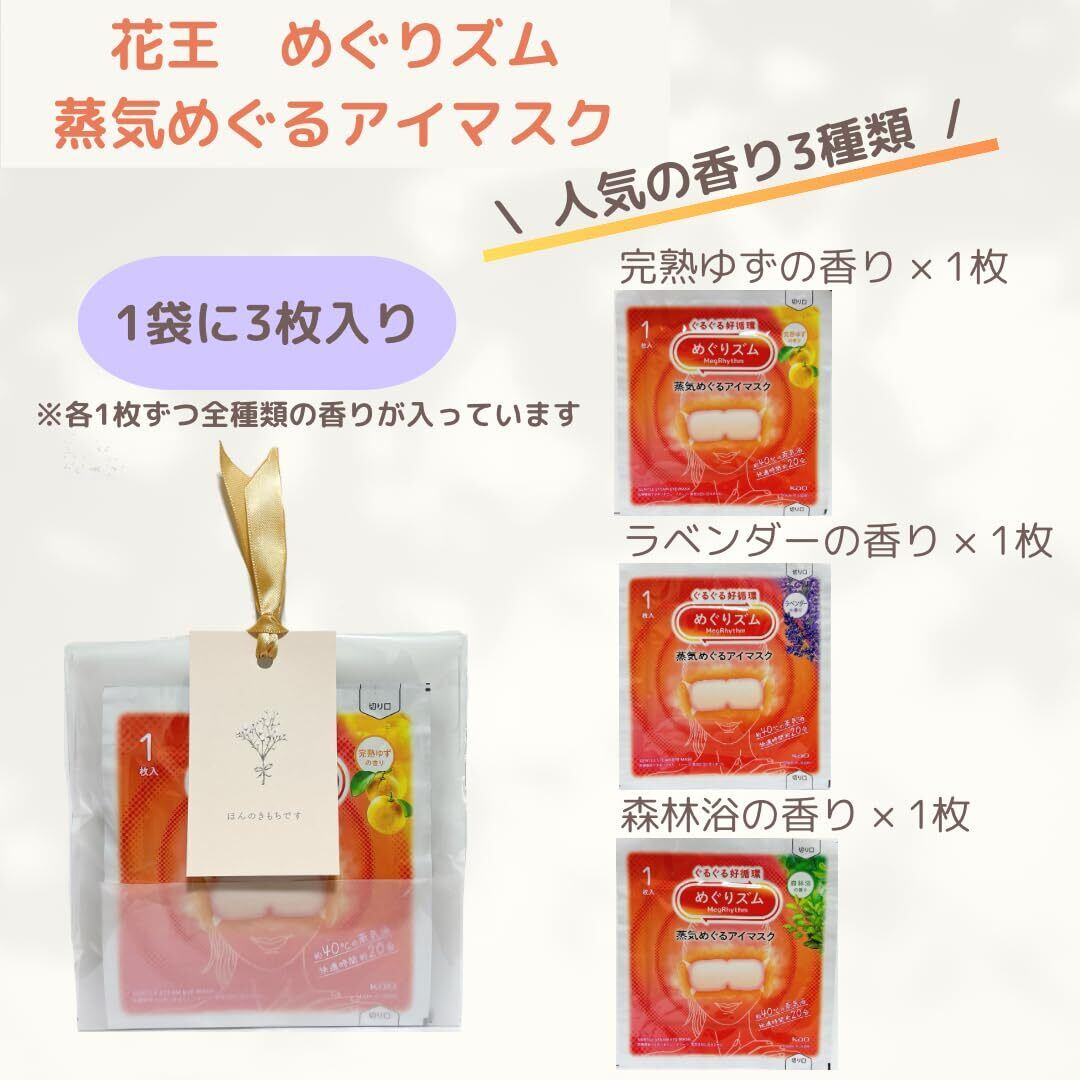 1袋に 花王 めぐりズム 計3枚(完熟ゆずの香り×1 森林浴の香り×1 ラベンダーの香り×1)が入っております