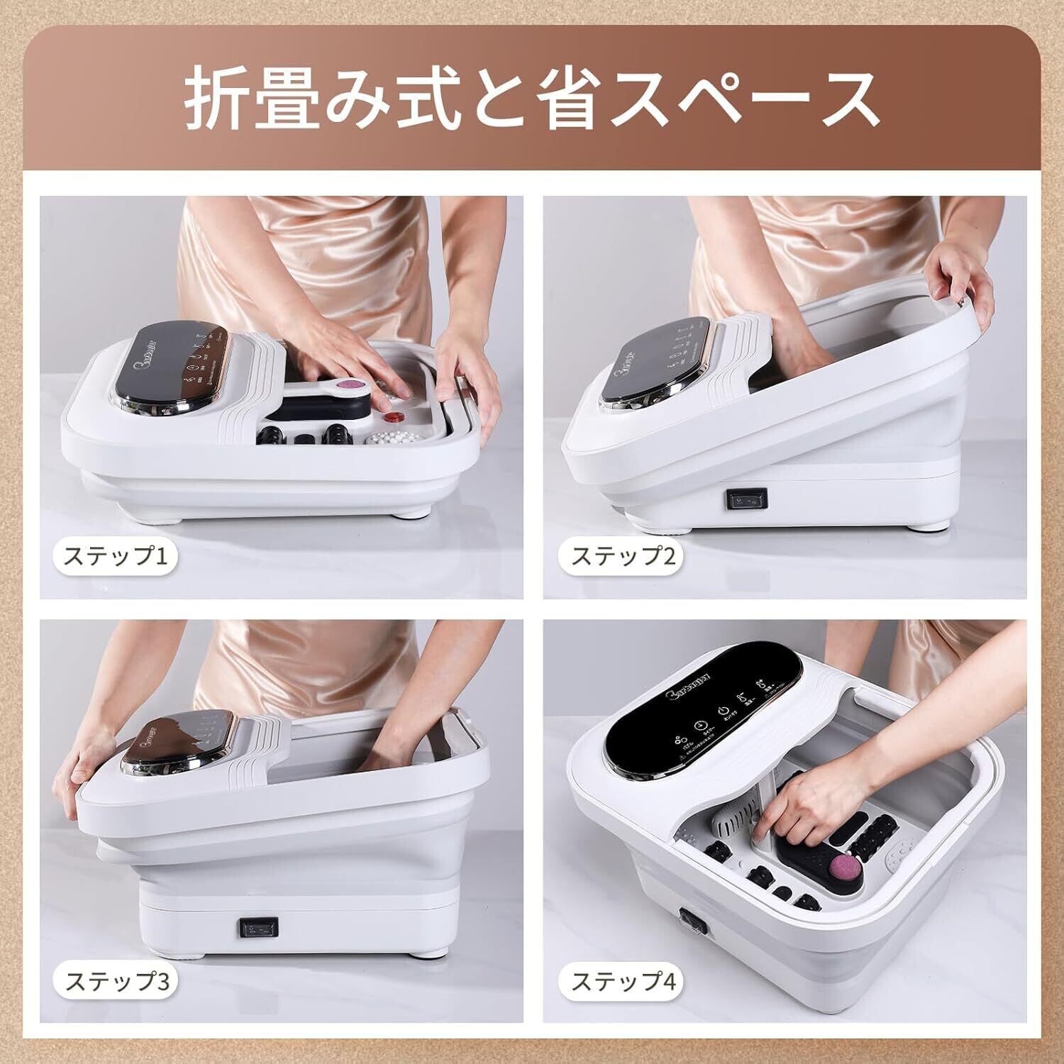 Carbagjoy折り畳め電動式 足湯器 足湯 フットバス 保温 浴剤可 10L大容量 温度調節 タイマー 赤光 減菌 バブル機能 静音設計 24個の電動もみ玉 排水口 取っ手付き 蓋付き 日本語取扱説明書 (ホワイト)