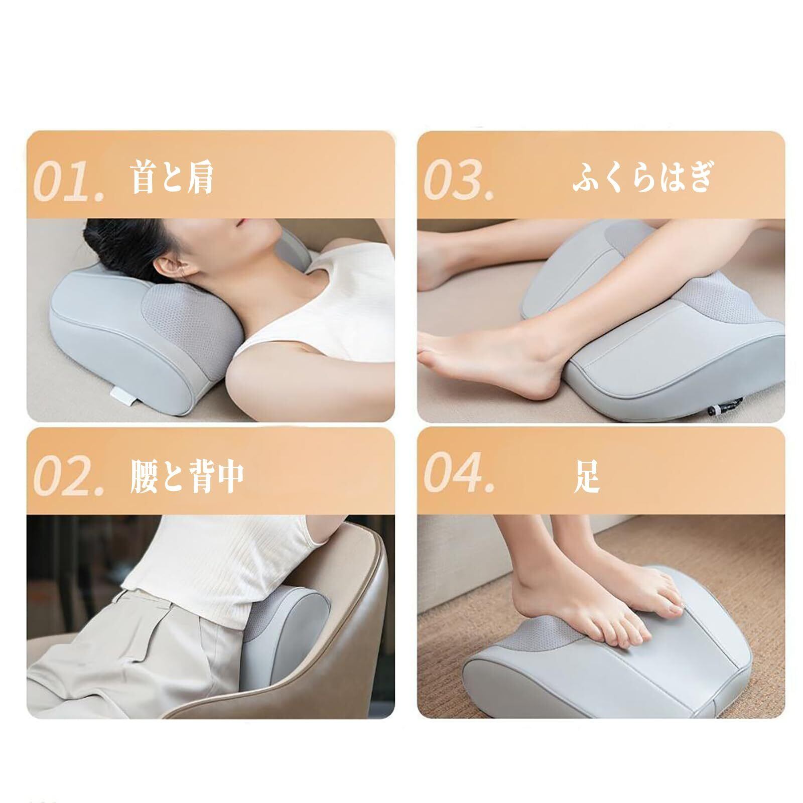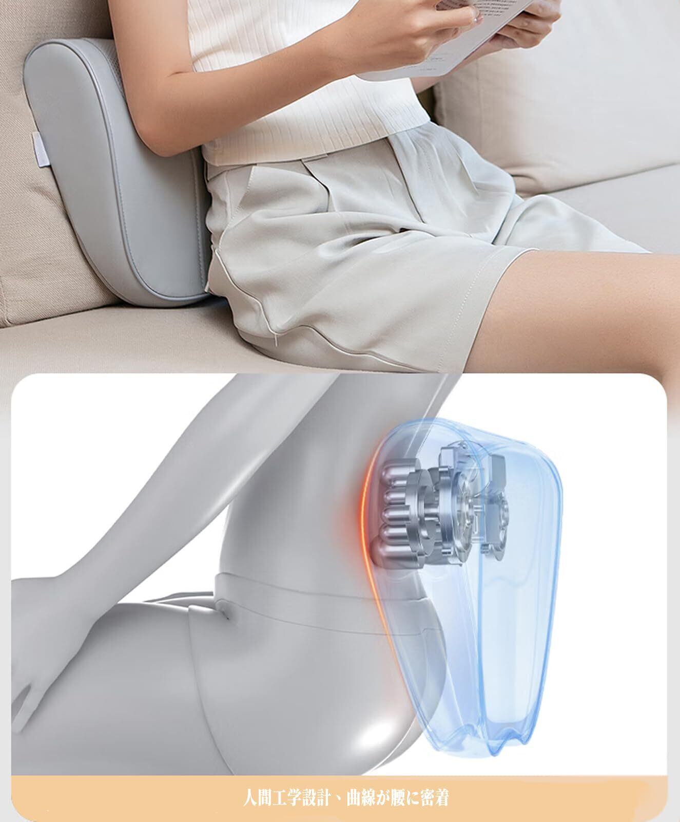 【多部位対応デザイン】 本製品は広い枕面と波状のデザインを採用し、体にぴったりフィットするように設計されており、腰部、背部、首などの複数の部位に適しています。