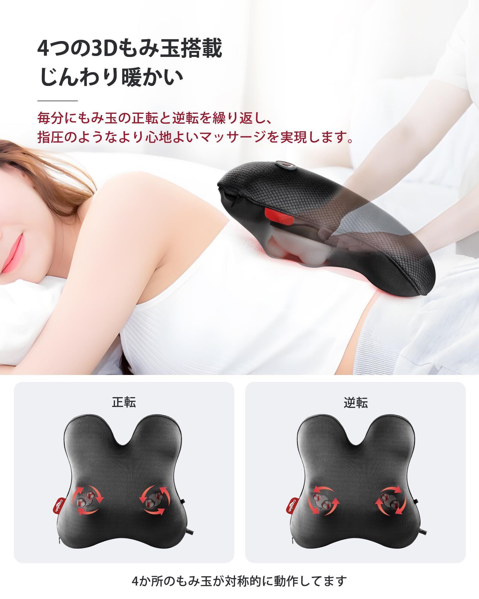 【全身マッサージ&指圧マッサージを実現】もみ玉が1分ごとに正転と逆転を繰り返し、マッサージ師の手技を真似してあたたかく、気持ちよいもみマッサージをやってくれます。コンパクトで軽量だから、持ち運びに便利で、お部屋の好きな場所でお使い頂けます。