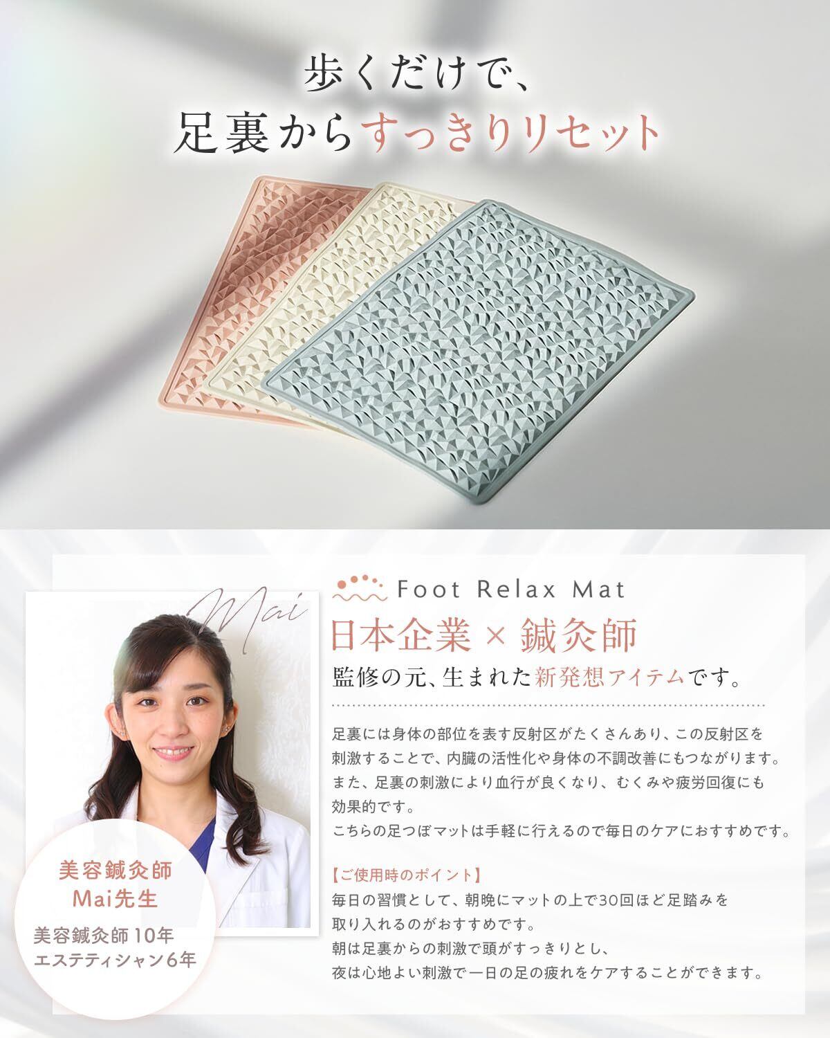 ️【歩くだけで足裏からすっきりリセット】 美容鍼灸師監修による突起構造が、足裏の反射区をやさしく刺激。1日30回の足踏みで血行を促し、むくみや疲れをリフレッシュします。