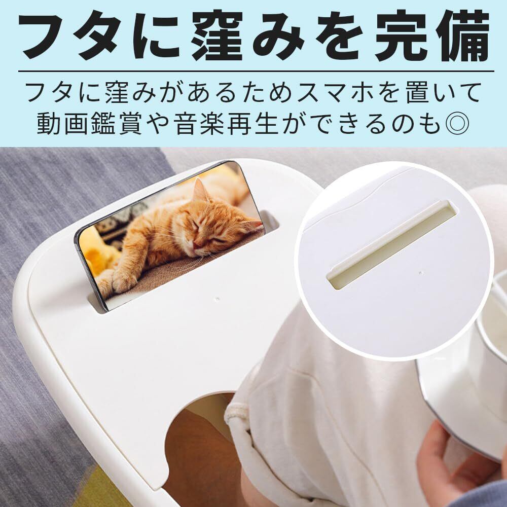 フットバスの内底は足ツボが搭載されているため、足湯と並行してマッサージが行える一石二鳥のアイテムです。蓋の表面にはスマホを置ける窪みがあるので、フリーハンズで動画鑑賞が可能です。