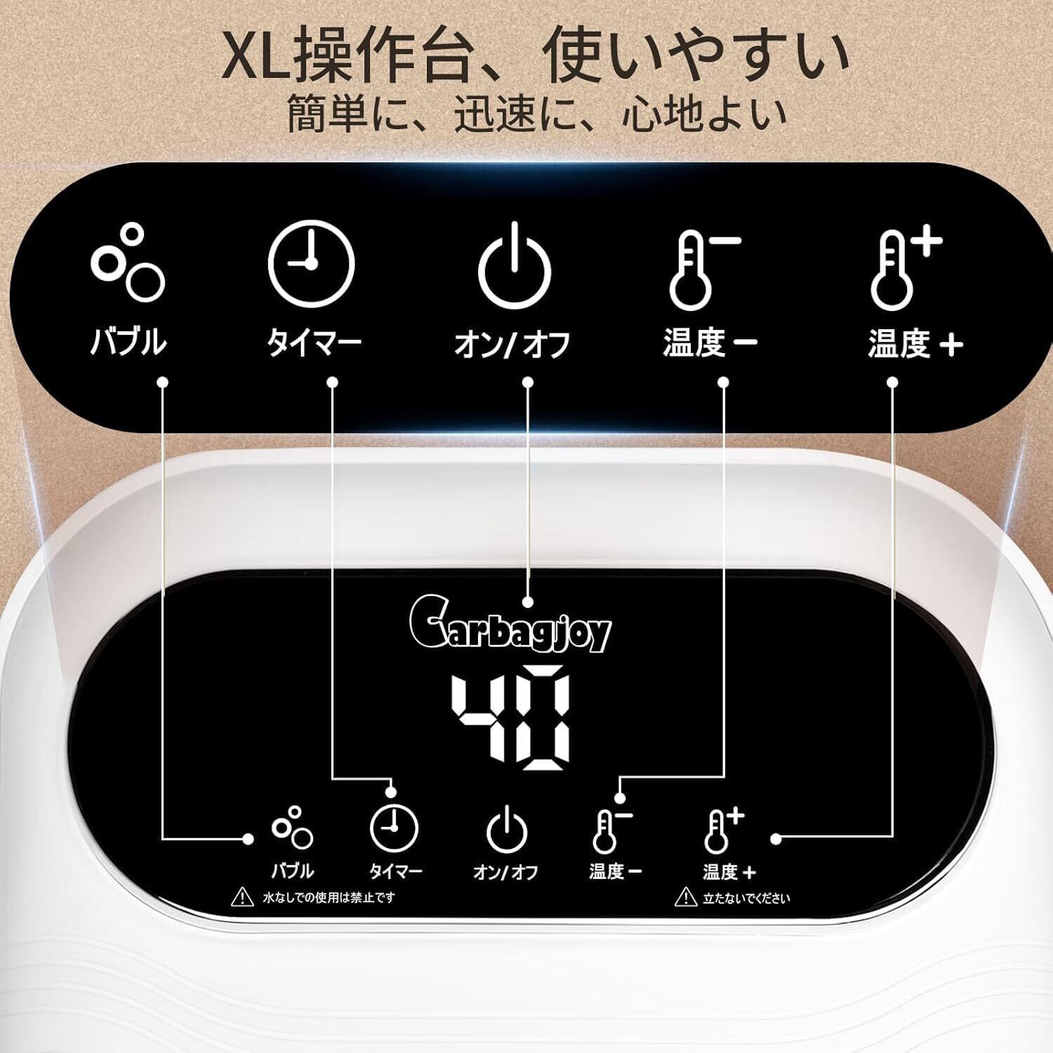 【バブル機能搭載】気泡口からジェットバスのようなバブルが出て、底の突起とともに足裏をほぐしてくれます。温めると同時に刺激を加え、足のお手入れが簡単に行えます。足湯で心と体をリラックスさせ、快楽的な生活を!