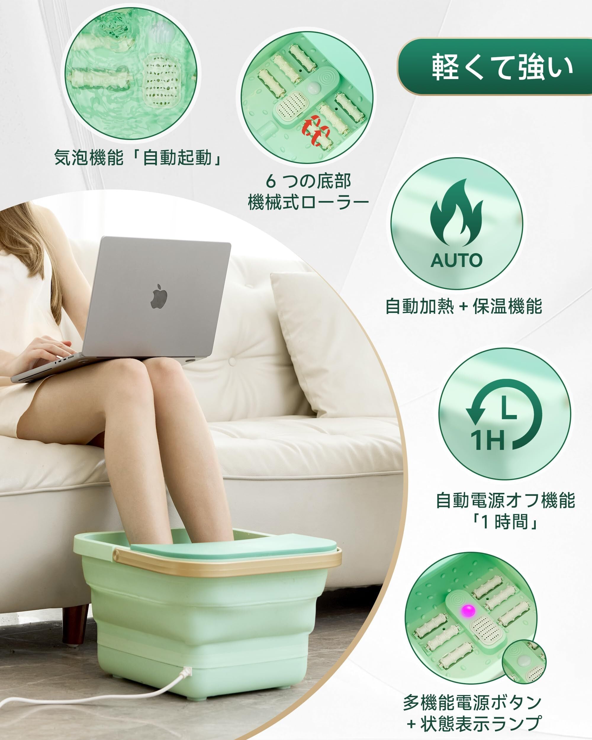 【2022最新】Ameer 足湯器 足湯 フットバス 折り畳め 浴剤可 高温自動オフ バブル機能 加熱・保温機能付き 隠し電源収納 取っ手付き 蓋付き 日本語取扱説明書(標準版 リモコンなし、単一温度)