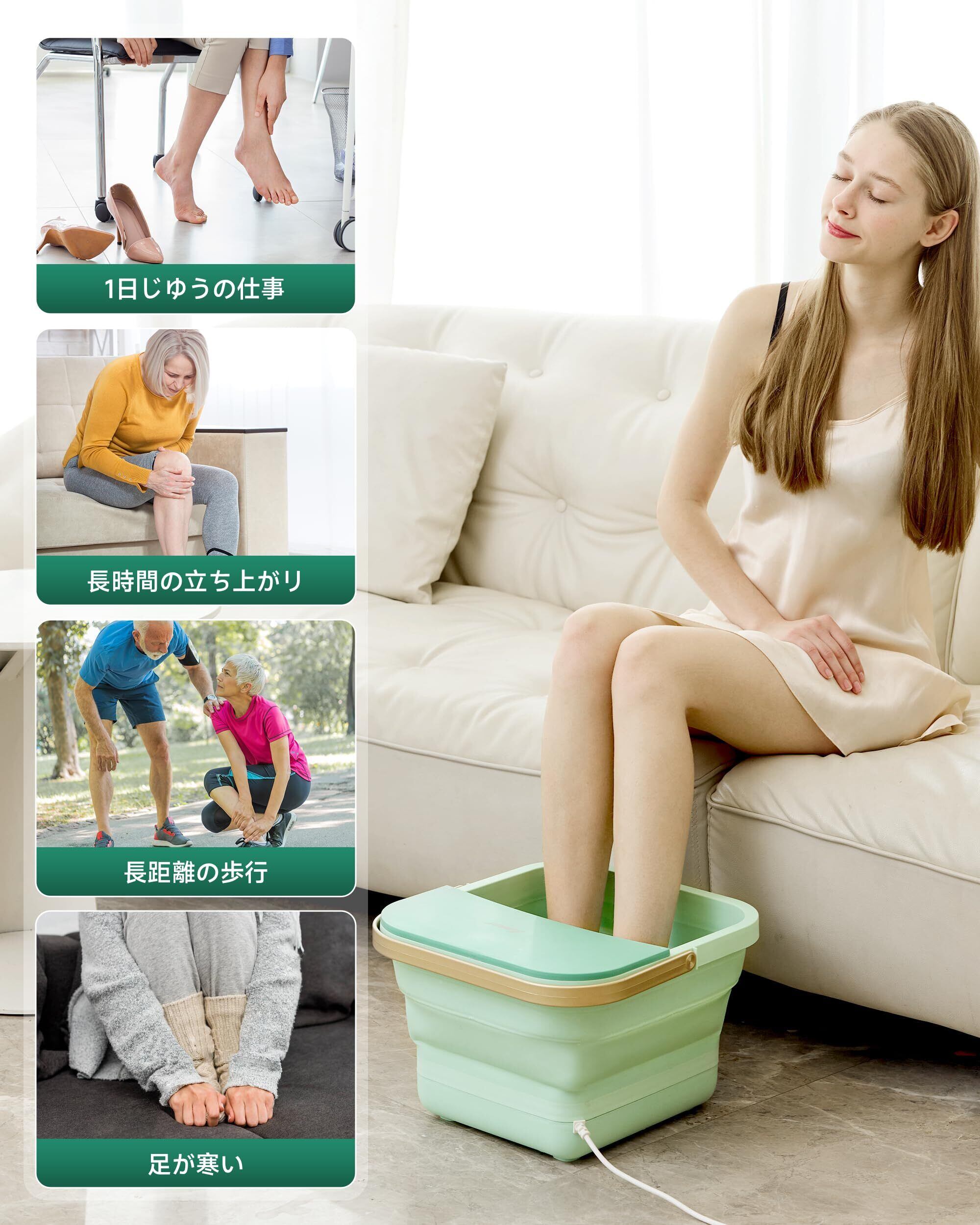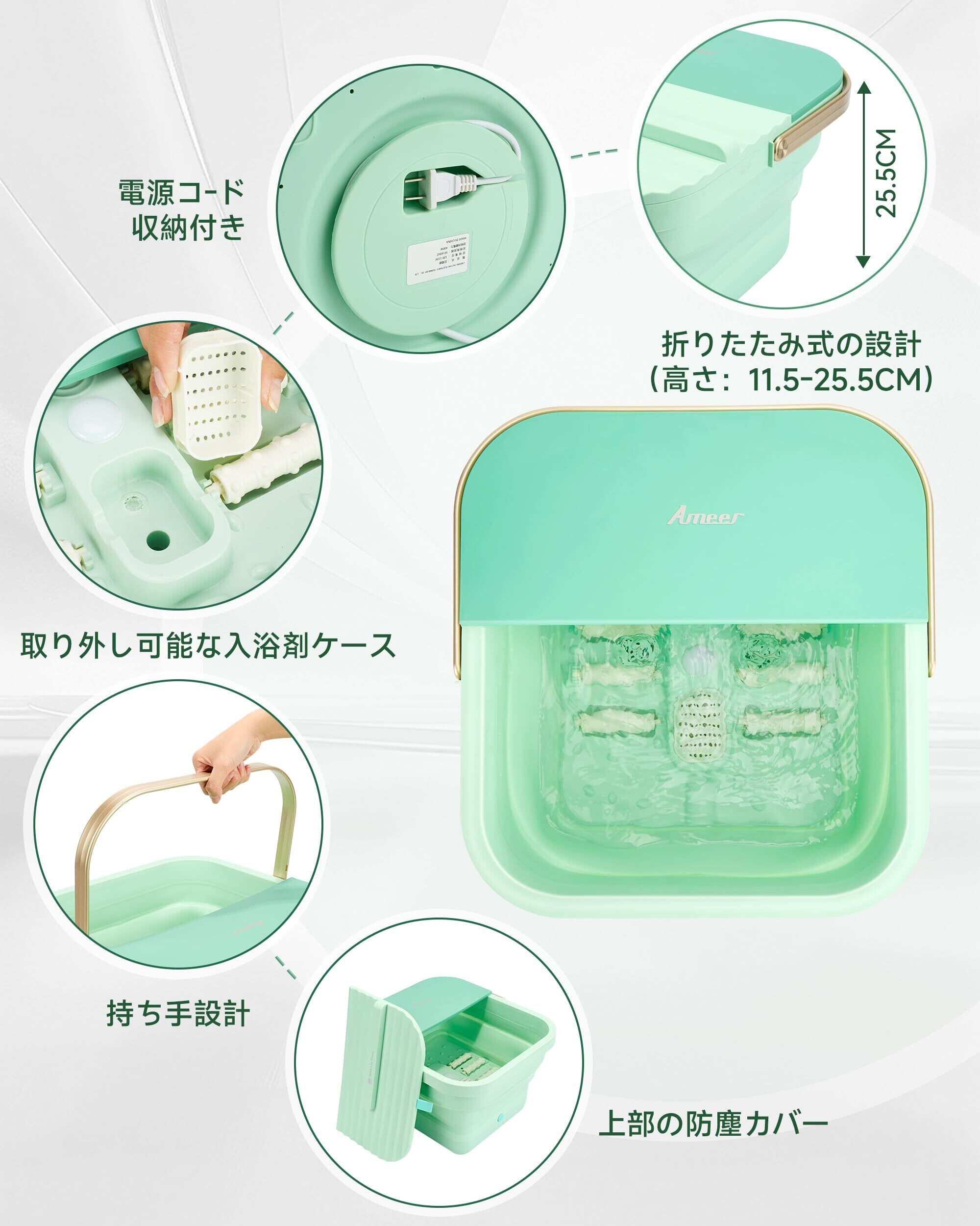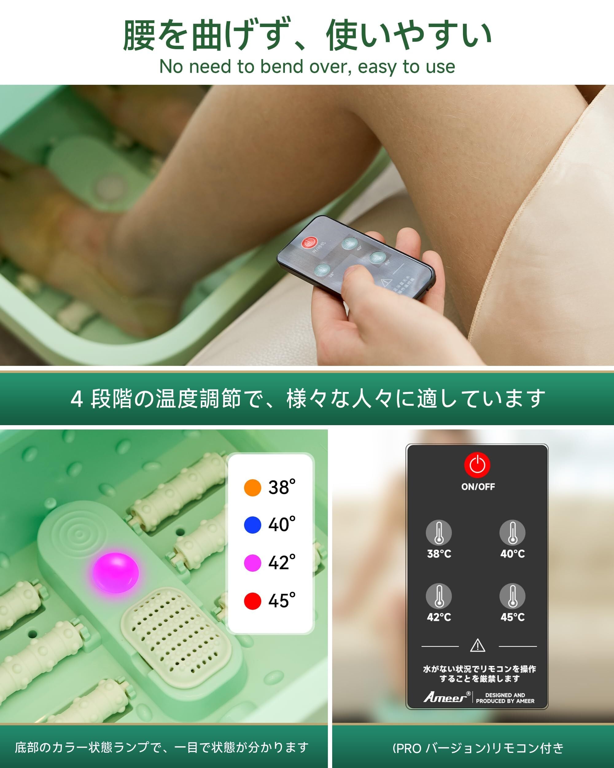 Ameer 足湯器 足湯 フットバス 折り畳め 浴剤可 高温自動オフ バブル機能 加熱・保温機能付き 隠し電源収納 取っ手付き 蓋付き 日本語取扱説明書(標準版 リモコンなし、単一温度)