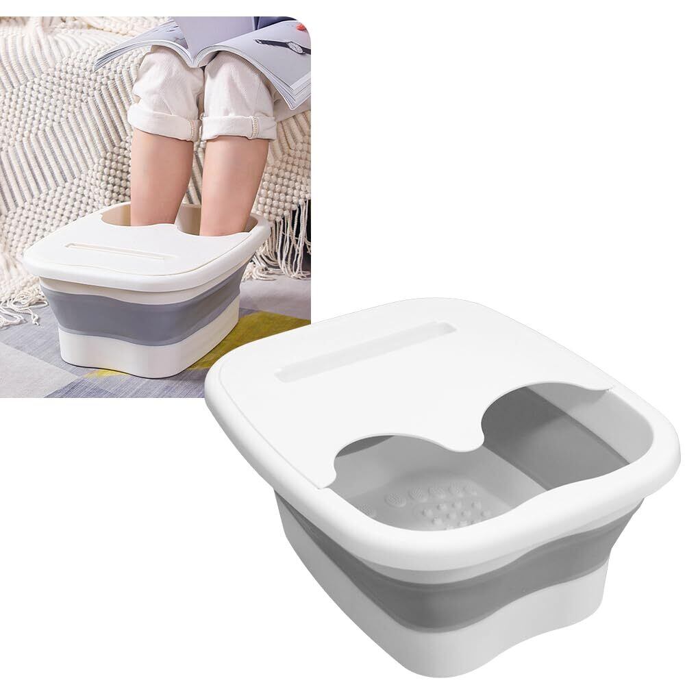 折り畳み式フットバス 足湯用バケツ 蓋付き 保温 持ち運び 軽量 アウトドア (ホワイト)