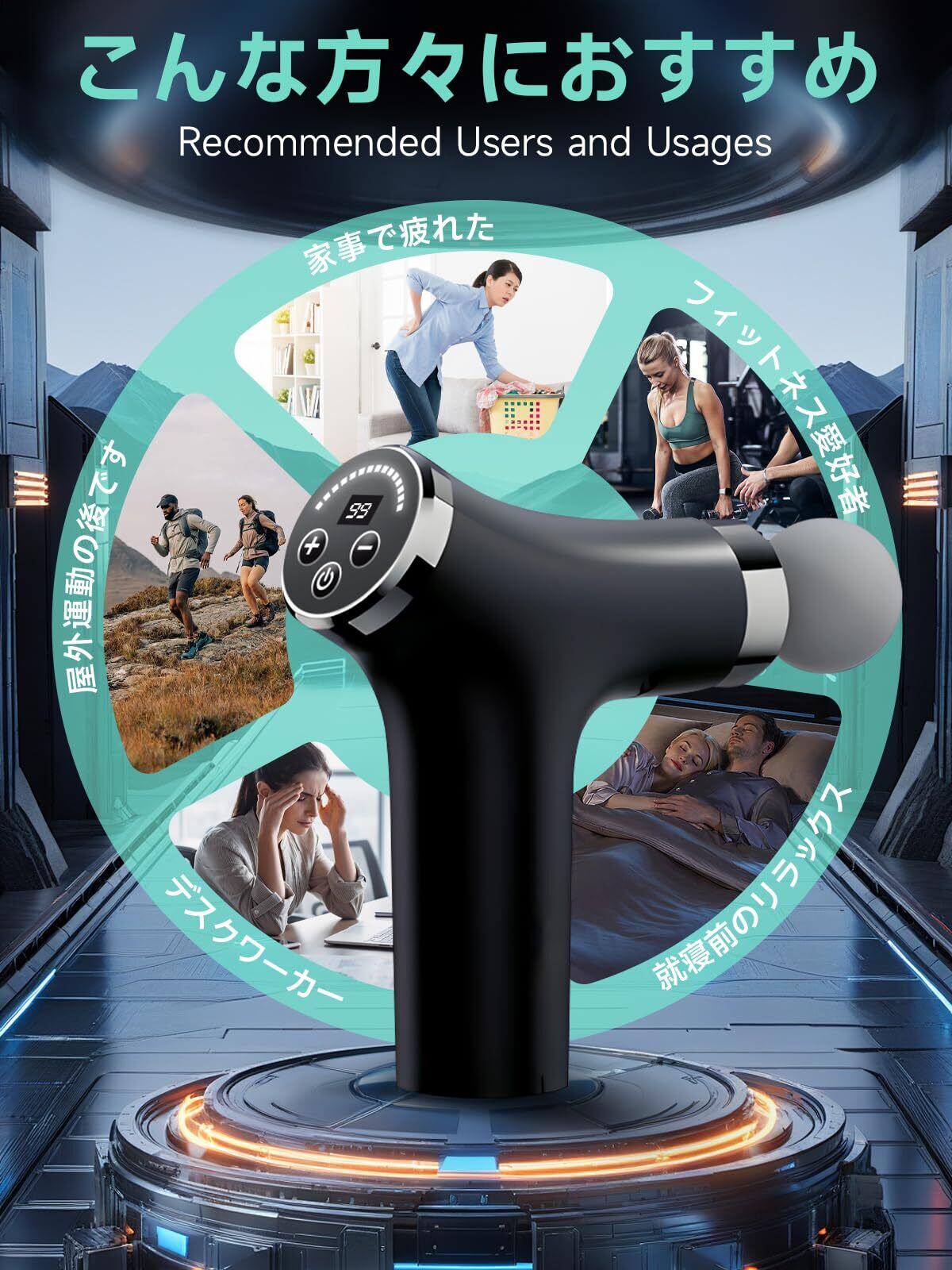 【4種類のヘッド&ギフト最適】Packlyx筋膜リリースガンセットには、ボール型、先尖型、フラット型、フォーク型の4種類の専用ヘッドを付属。身体の各部位に合わせた設計となっています。オフィスワーク、運動、家事後など、多様なシーンでお使いいただけます。洗練されたデザインと高い実用性を兼ね備え、操作も簡単なため、友人、目上の方、両親、上司や同僚などへの贈り物として、理想的なギフトに最適です。